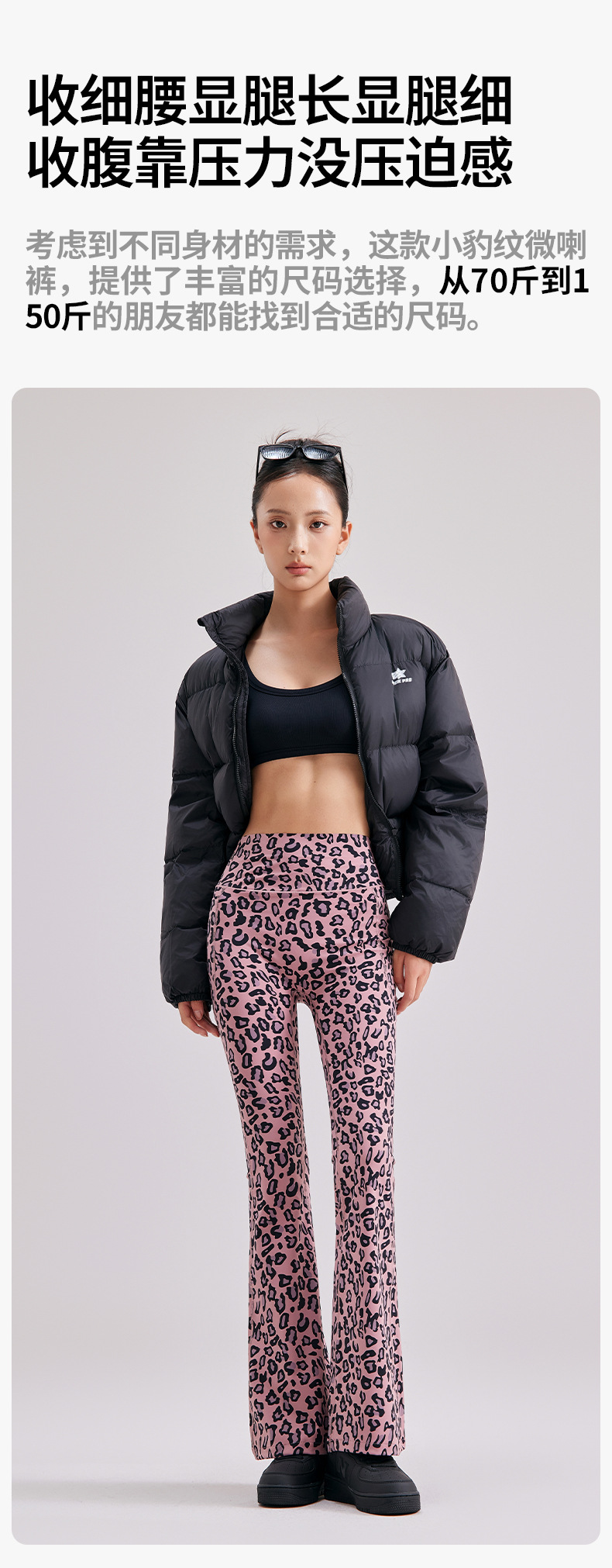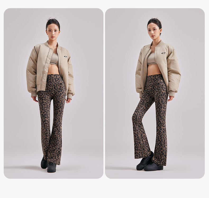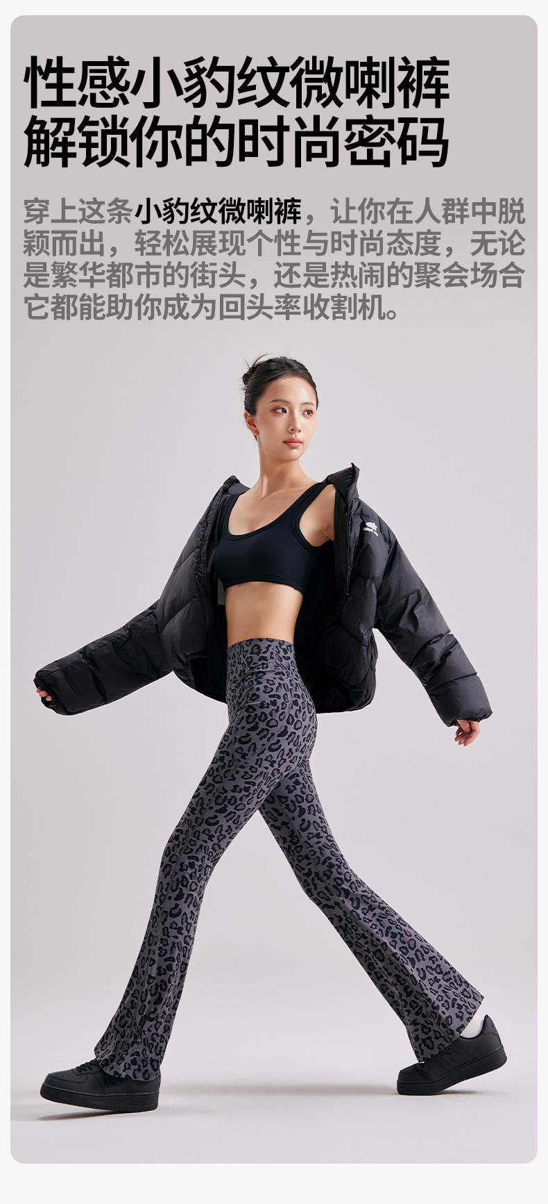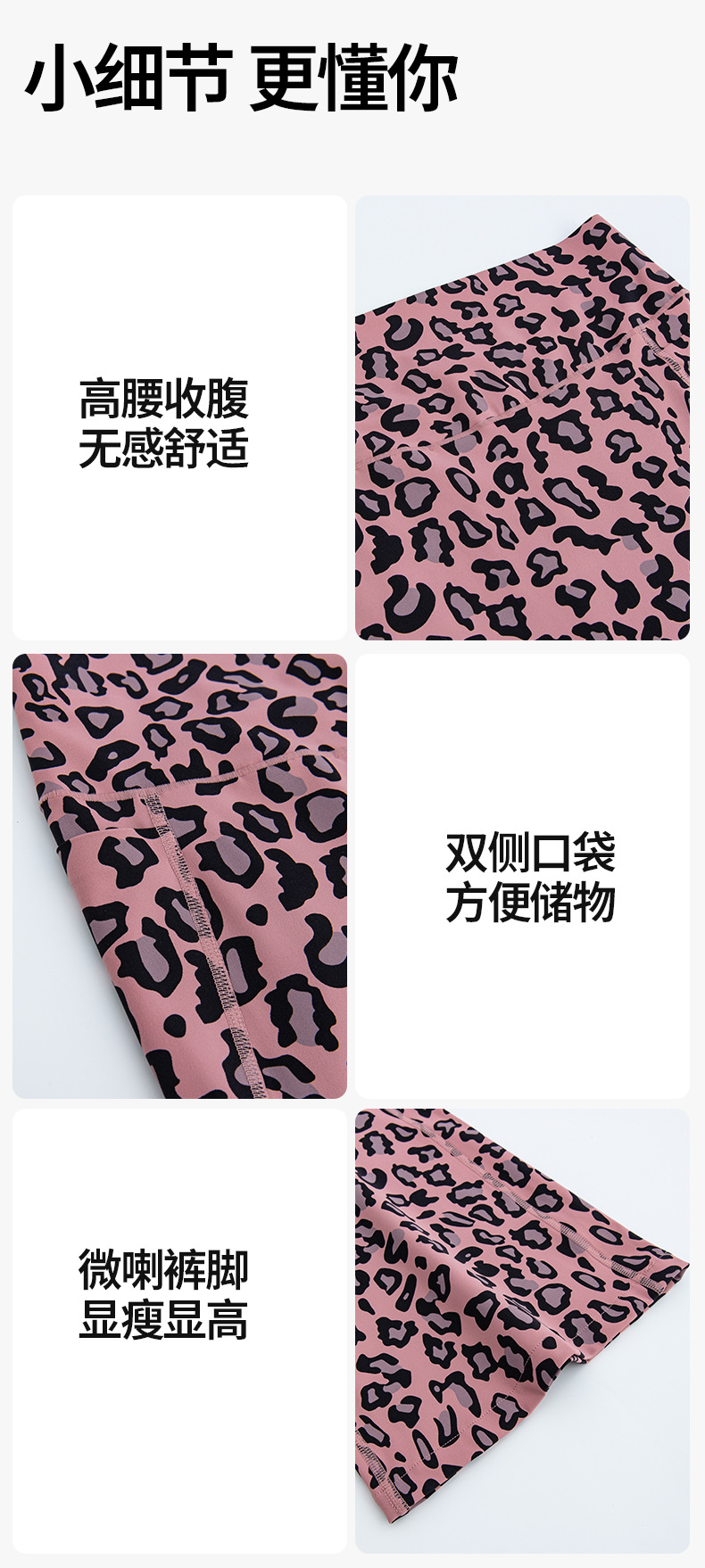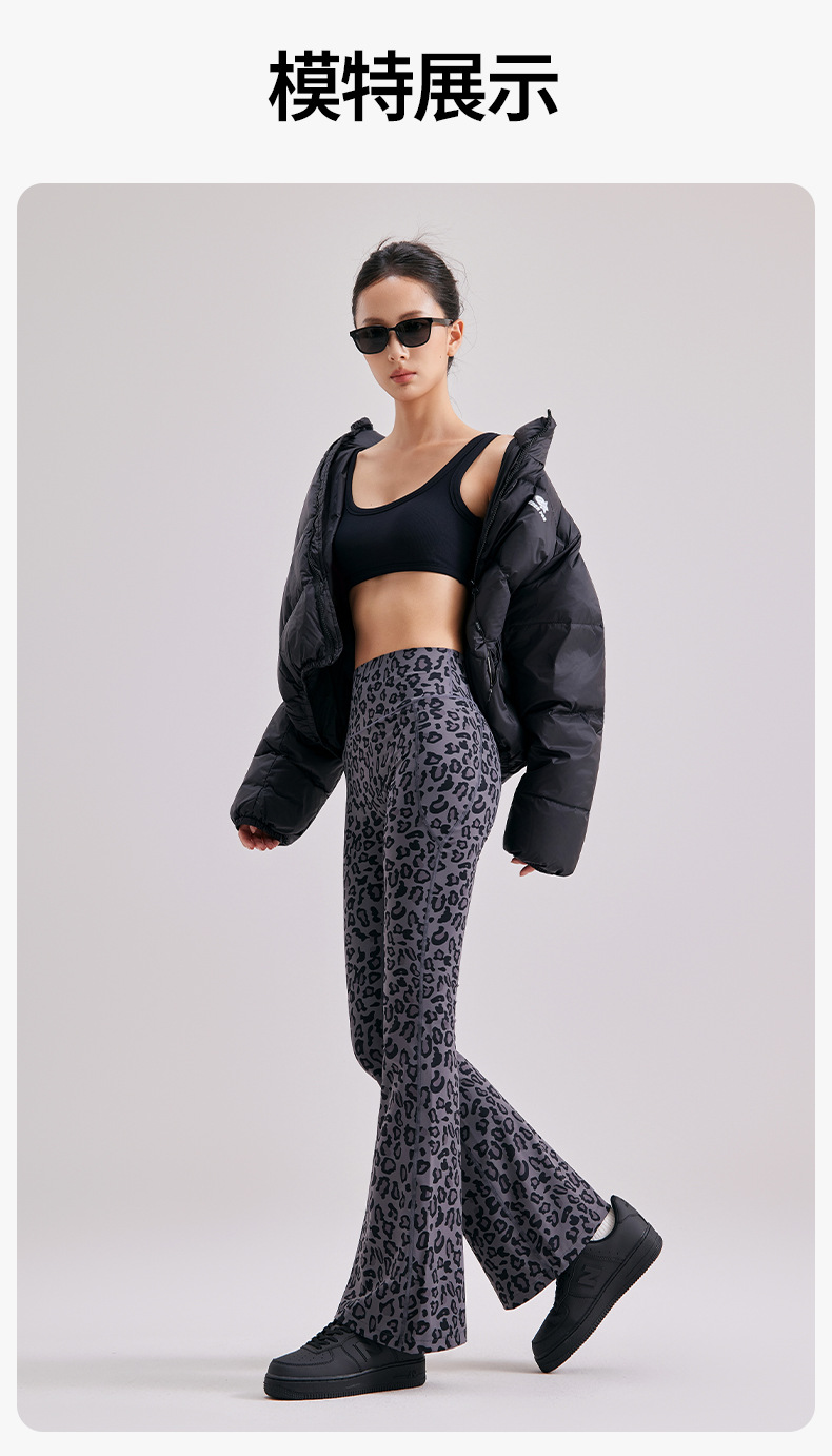 新款豹纹微喇裤女秋冬高腰弹力显瘦提臀裤欧美小个子垂感瑜伽裤