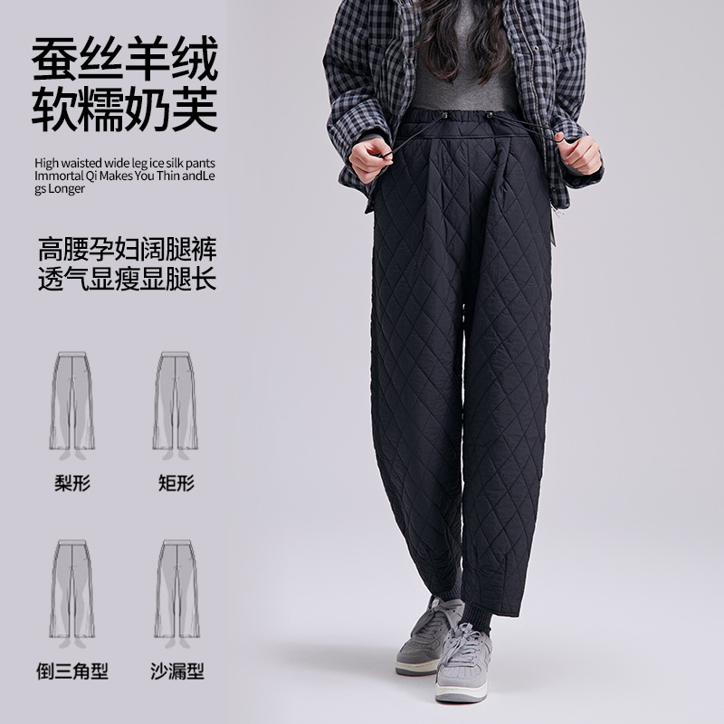 孕妇阔腿裤冬季加厚宽松大码束脚裤高腰高弹力带抽绳托腹运动裤