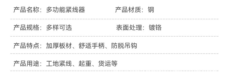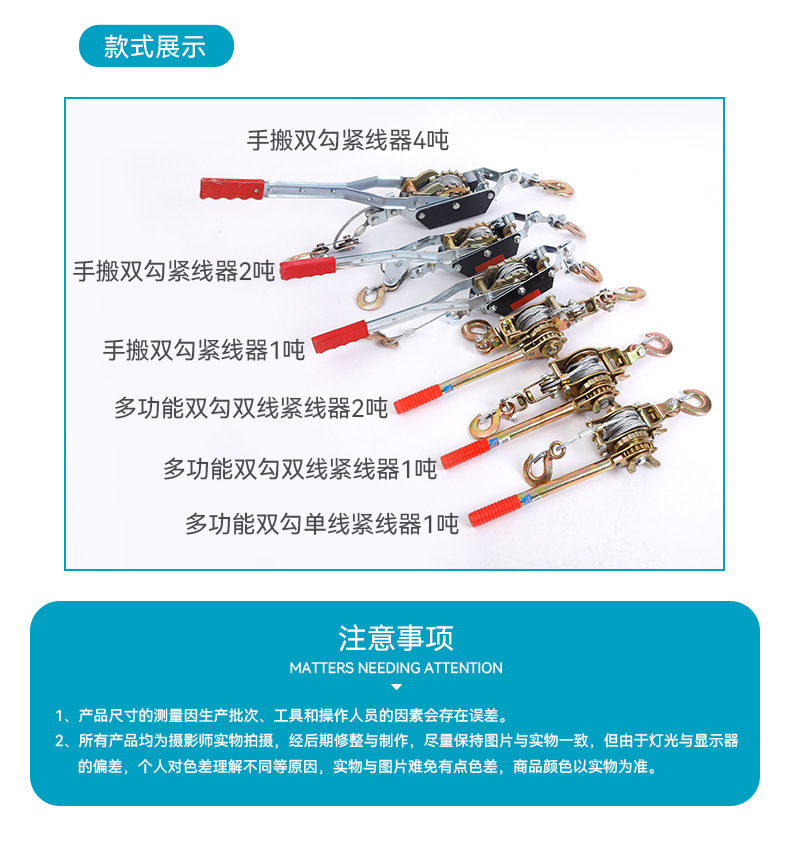 规格 卡线器,双钩1T紧线,双钩2T紧线器,双钩4T紧线器,多功能紧线器单线1T,多功能紧线器1T,多功能紧线器2T