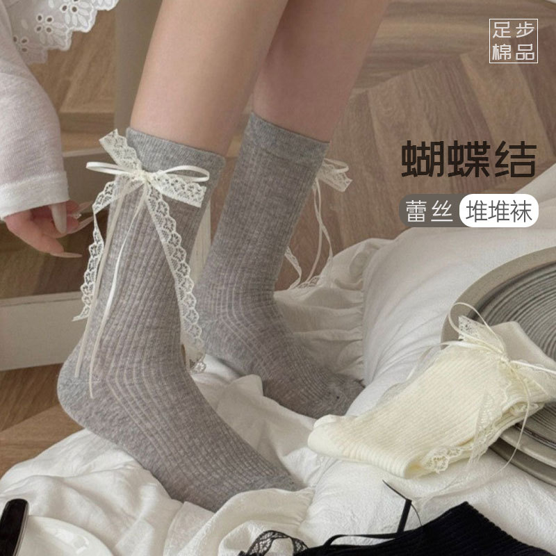 Iuはレースの蝶結びのレースの夏の薄いタイプの靴下の女性のバレエの風の中でストッキングのJKのロリータの靴下を積みます。
