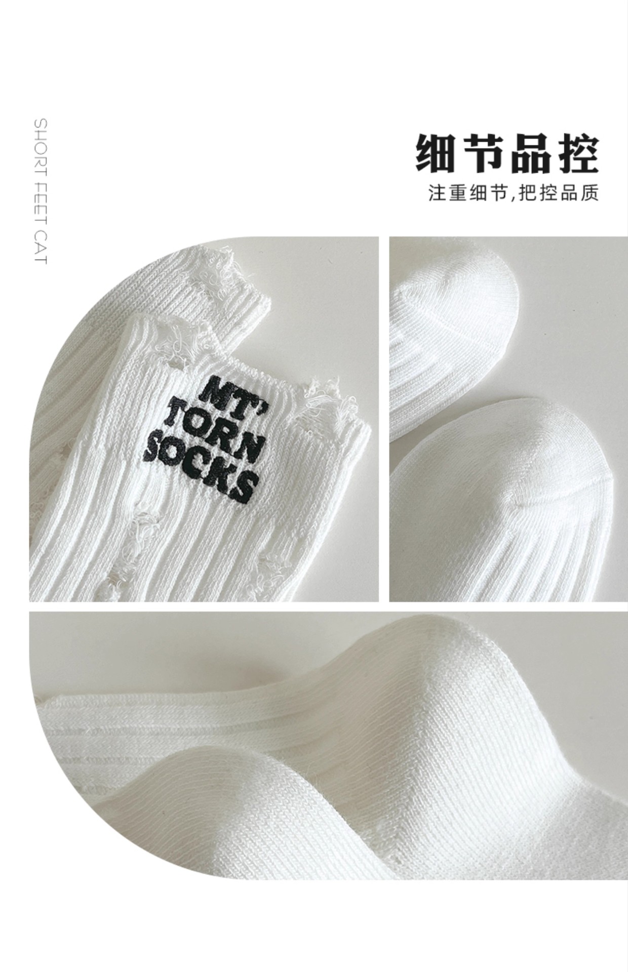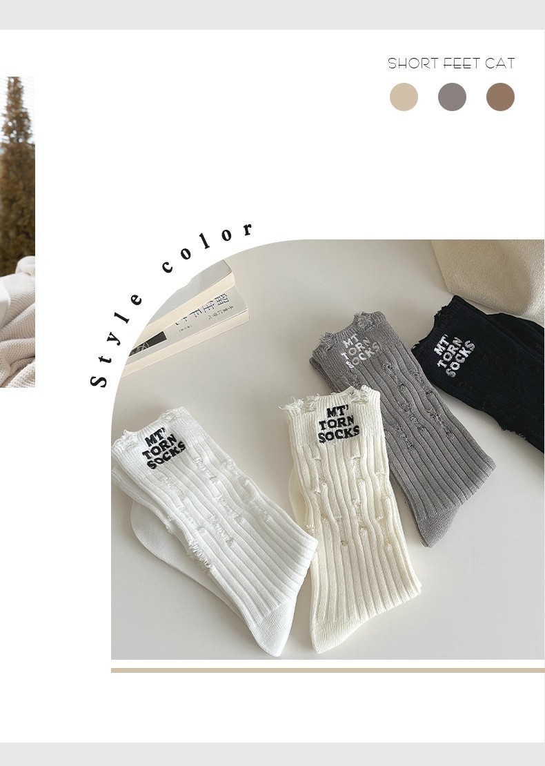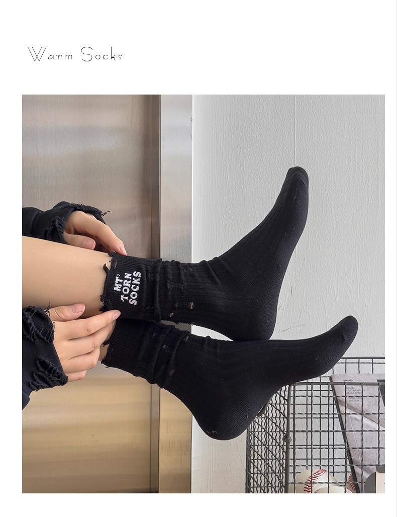 新しいダメージ加工ソックス レディース 春秋 薄手 無地 コットン ストリートスタイル ロングソックス ダメージソックス パイルソックス デザイン 吸汗性