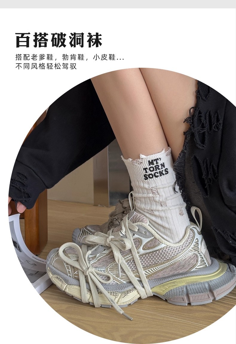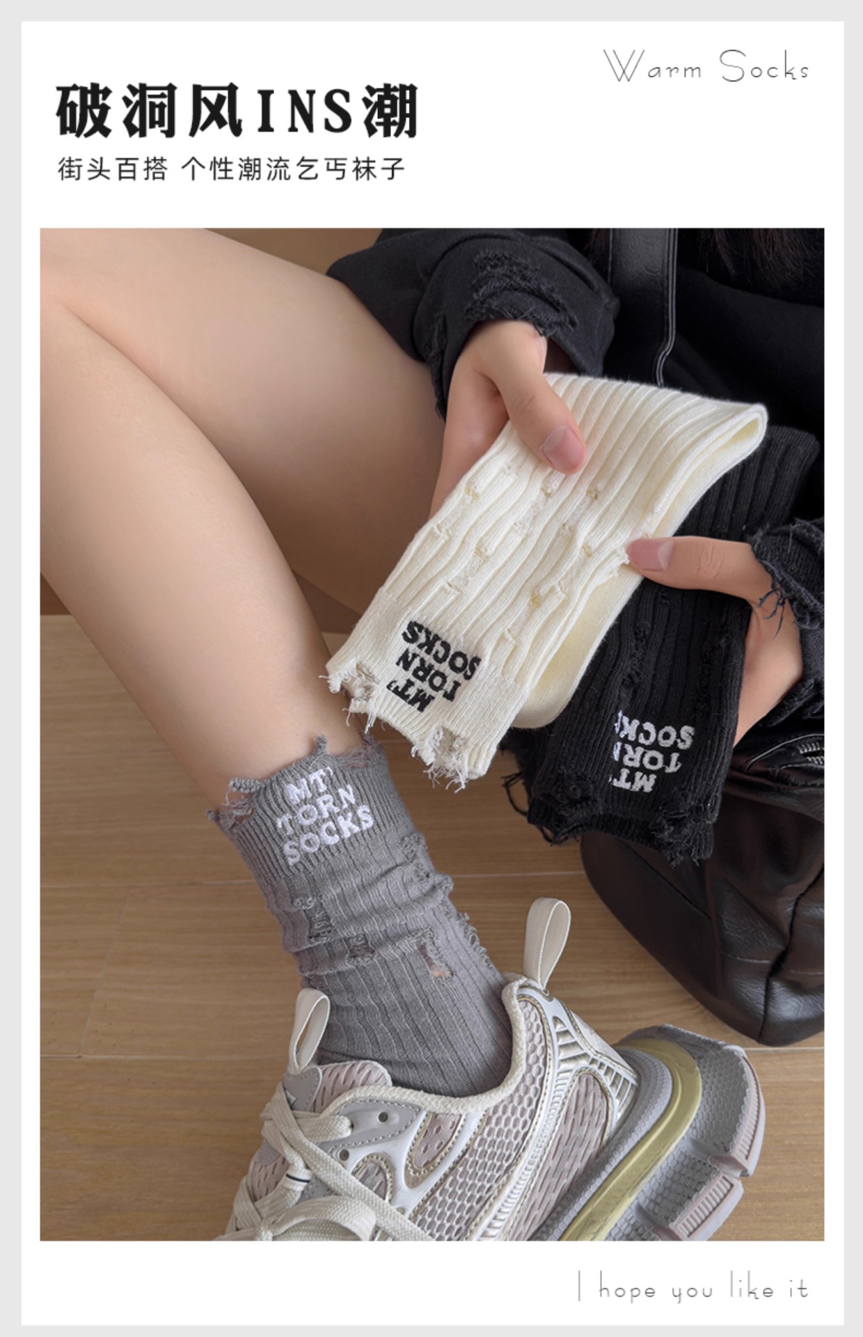 穴を割った靴下の女性の中筒靴下ins風の街頭のファッションの穴の靴下の乞食の靴下の中筒の靴下の韓国版