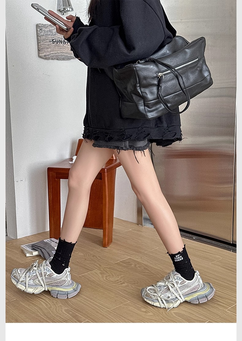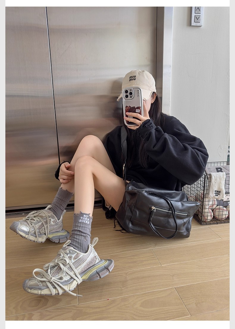 ヨーロッパ製通気性のあるトレンドソックス レディース 春夏新作 手縫いボタン飾り カジュアル ダメージ加工 インス風ミドル丈ソックス