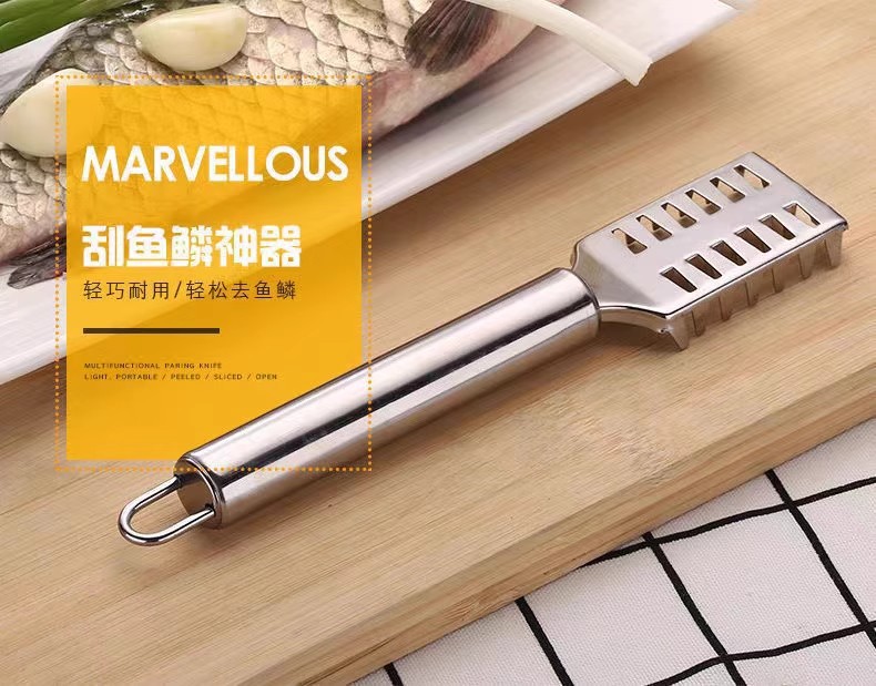 ステンレスのうろこは魚の腹を削ります。家庭用は簡単にうろこを削ります。
