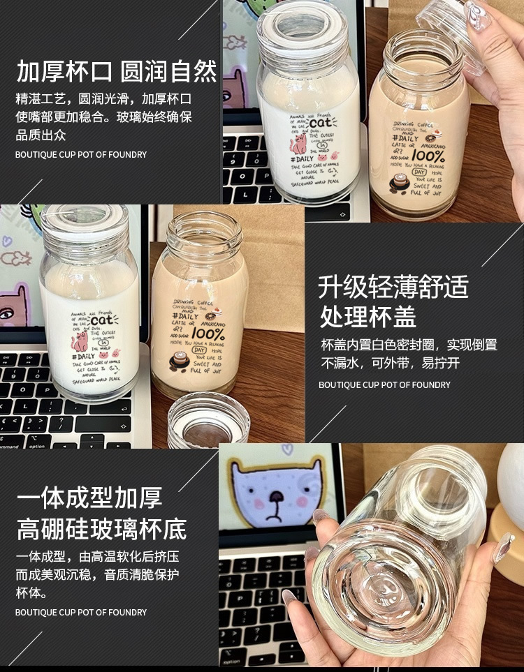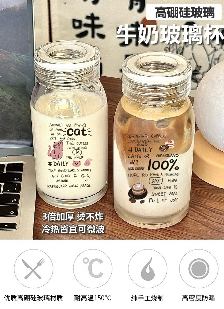 新品上市,加厚高硼硅玻璃,便携牛奶杯,支持混批