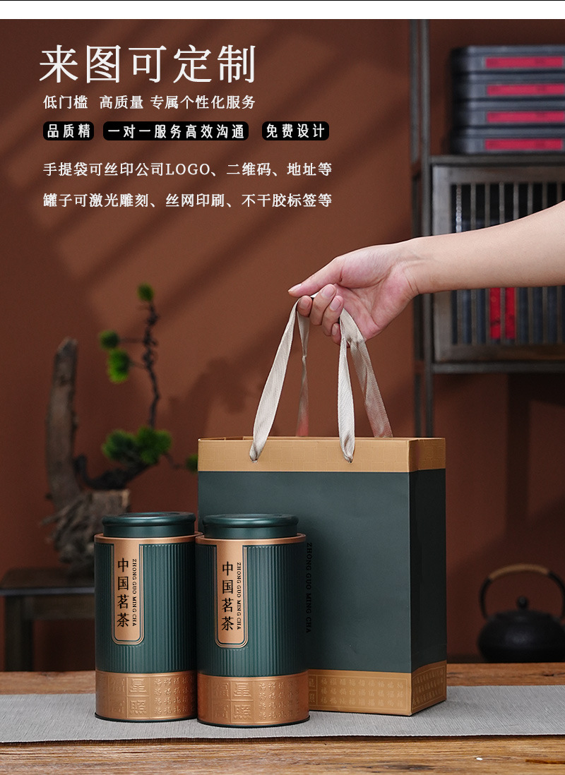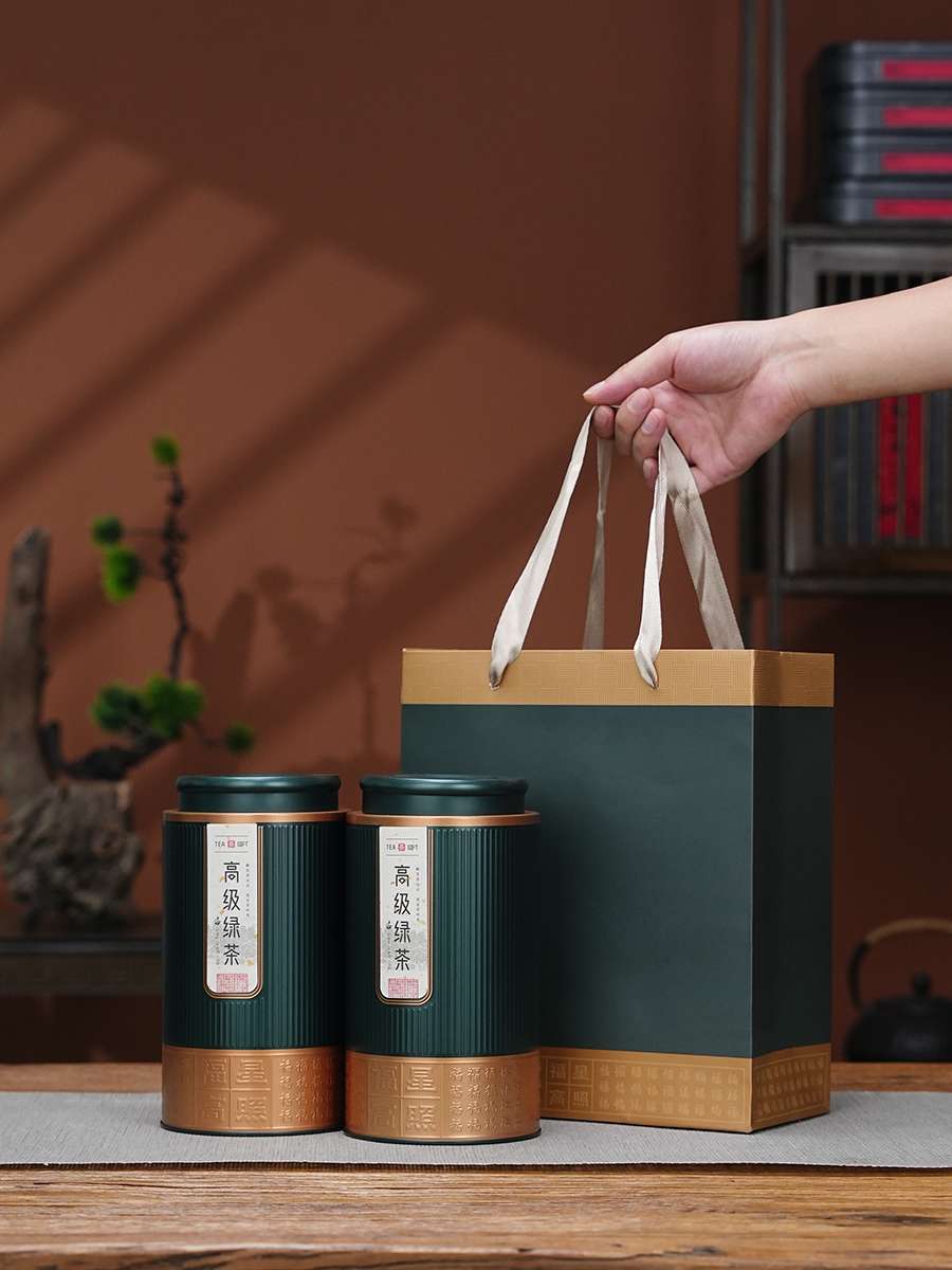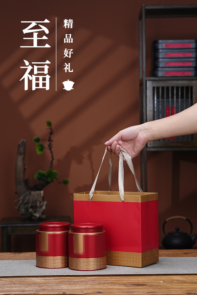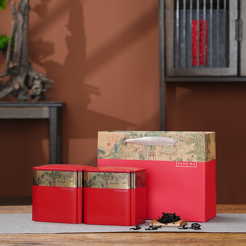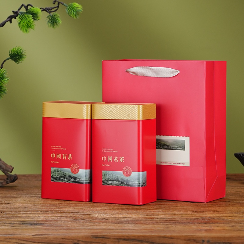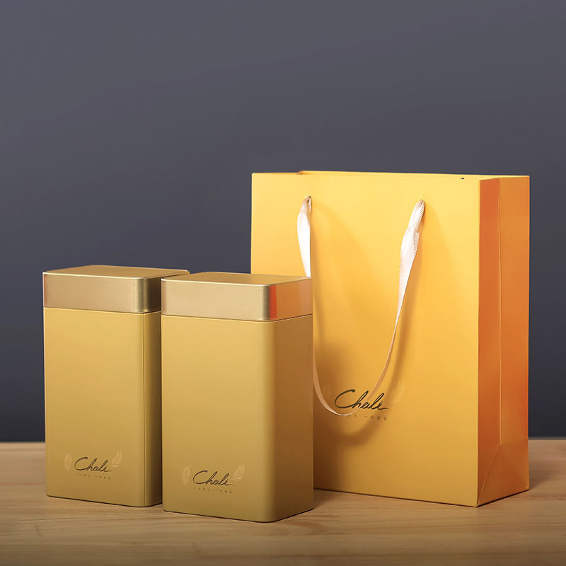 高級茶葉缶鉄缶半斤入通用紅茶緑茶白茶家庭用金属角缶セット