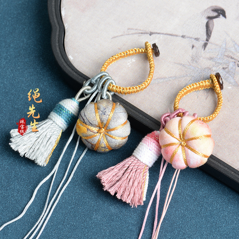 手把件绳民族风流苏手工编织金线指环扣diy饰品配件南瓜香囊包挂