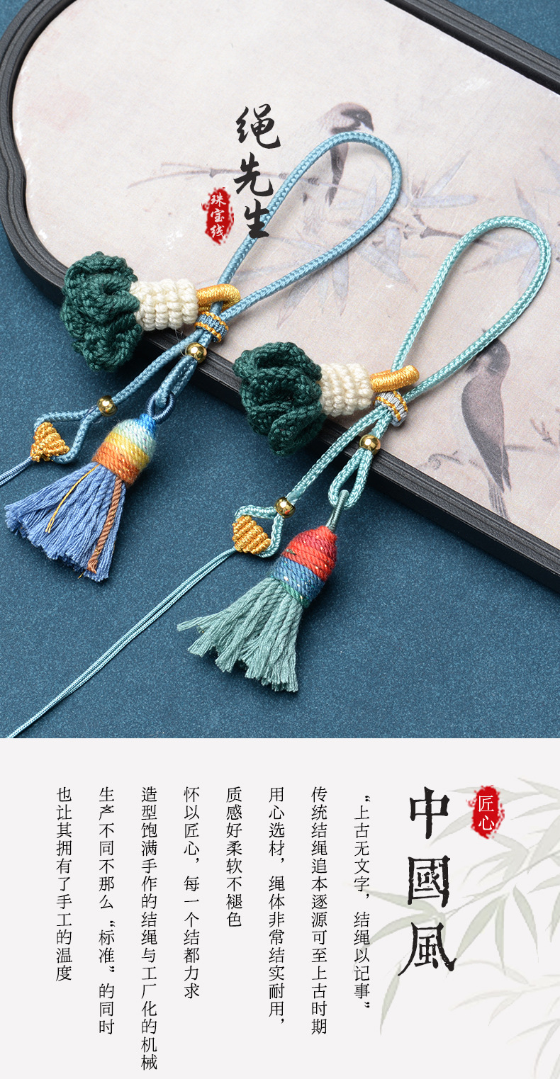 手工编织金刚结钥匙扣绳藏式流苏吊穗民族风文玩手把玩件挂绳