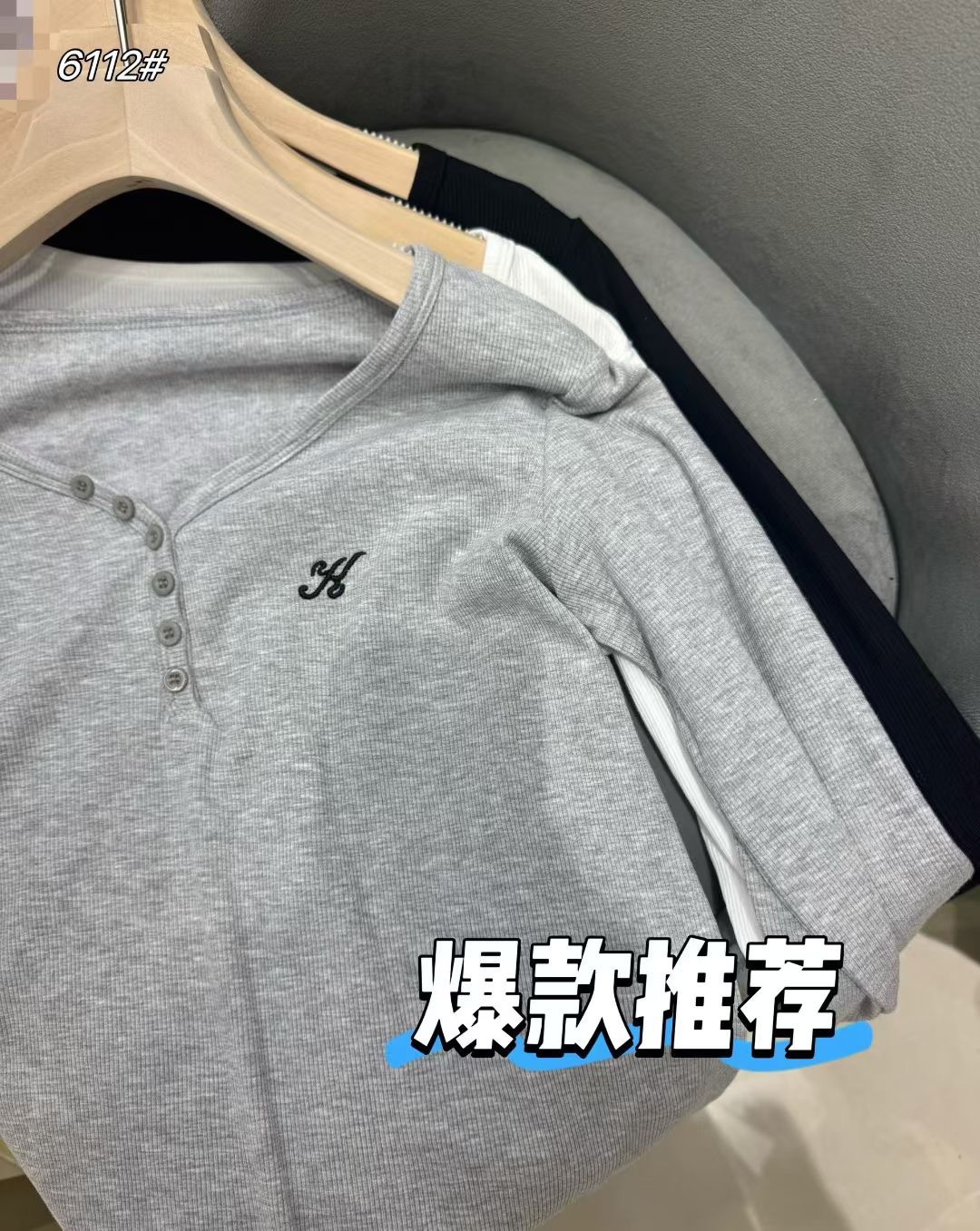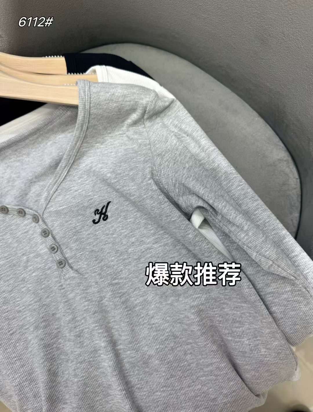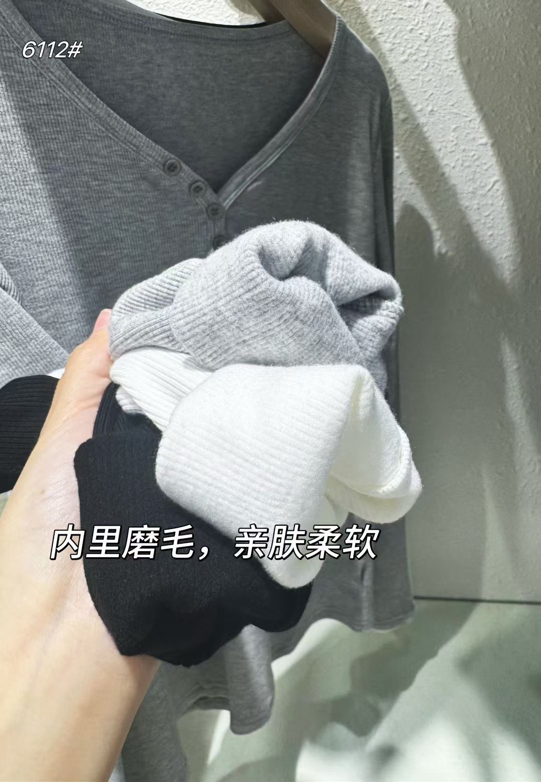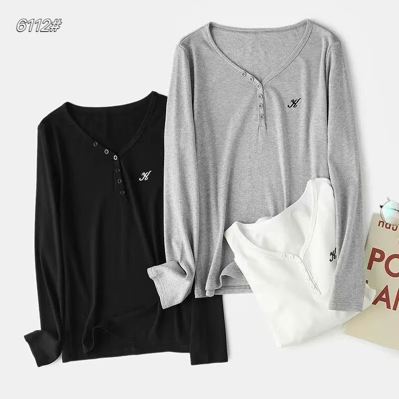 秋冬新款大码V领半排扣长袖打底衫女磨毛宽松舒适刺绣上衣女批发