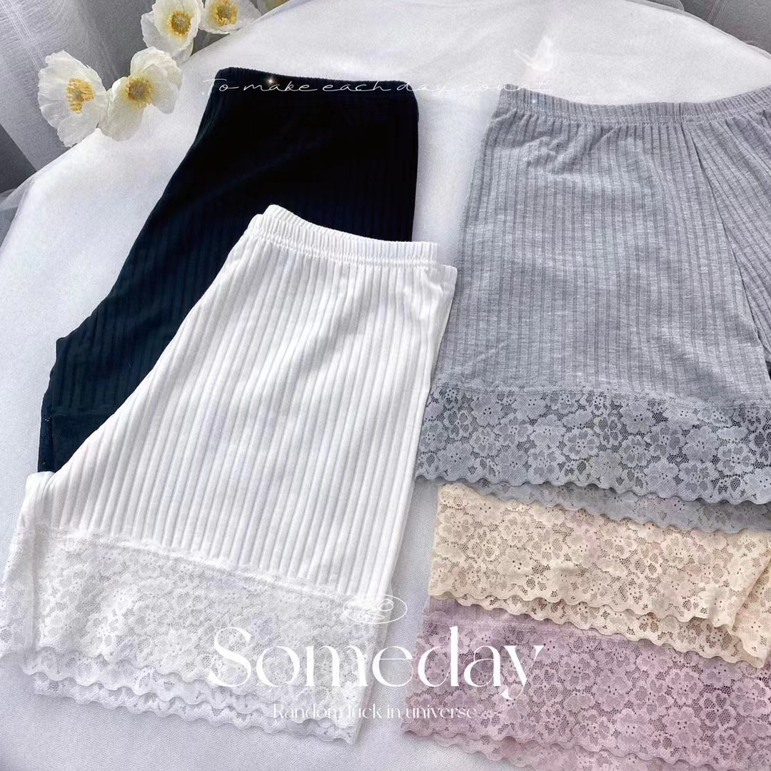 夏の新しい大きいサイズの女性用レース安全パンツ、卸売露出防止縦縞綿レギンス