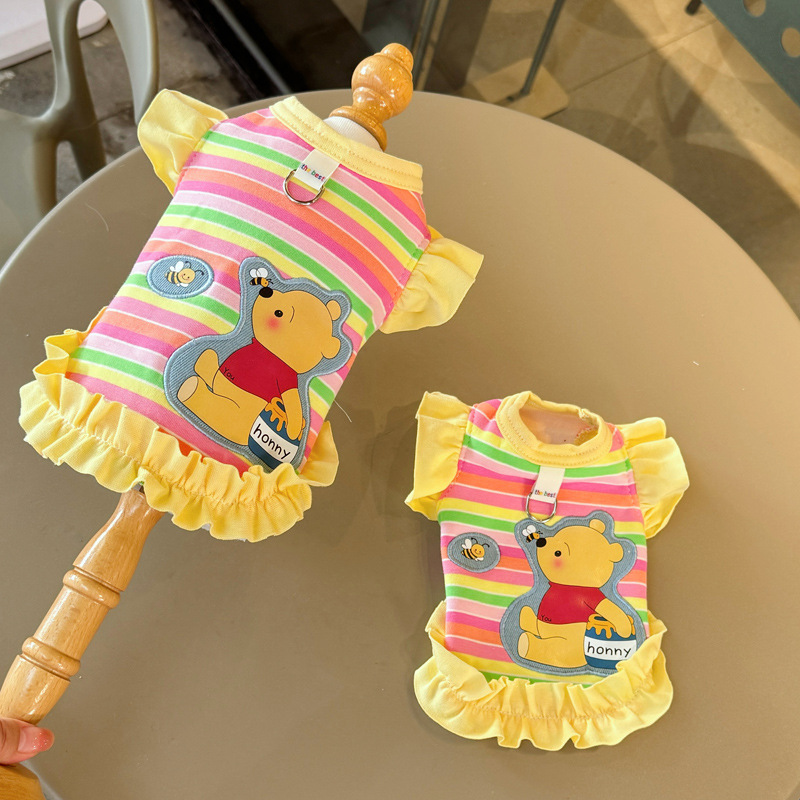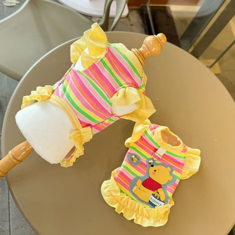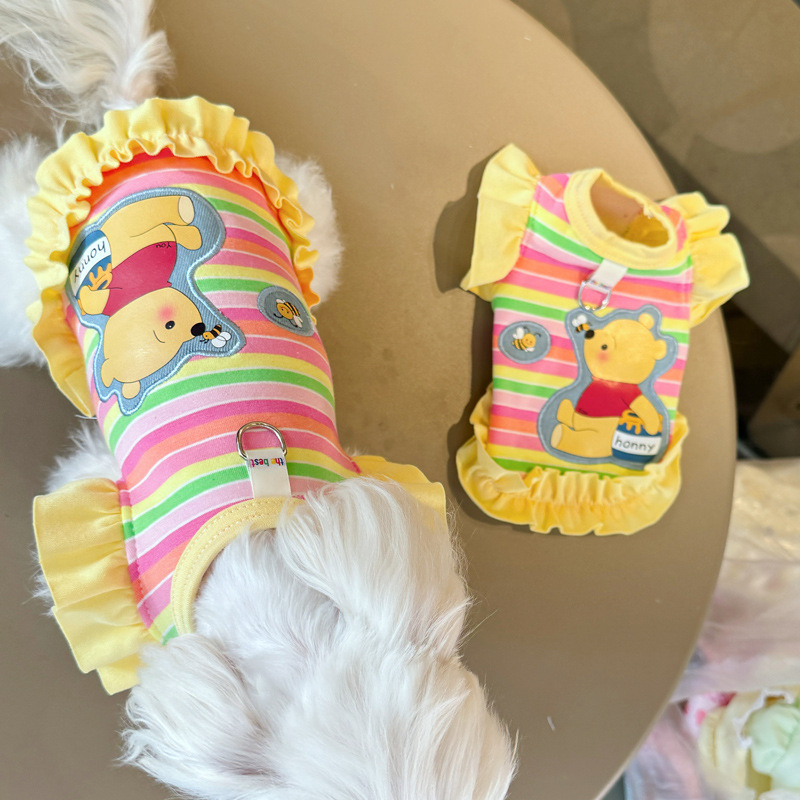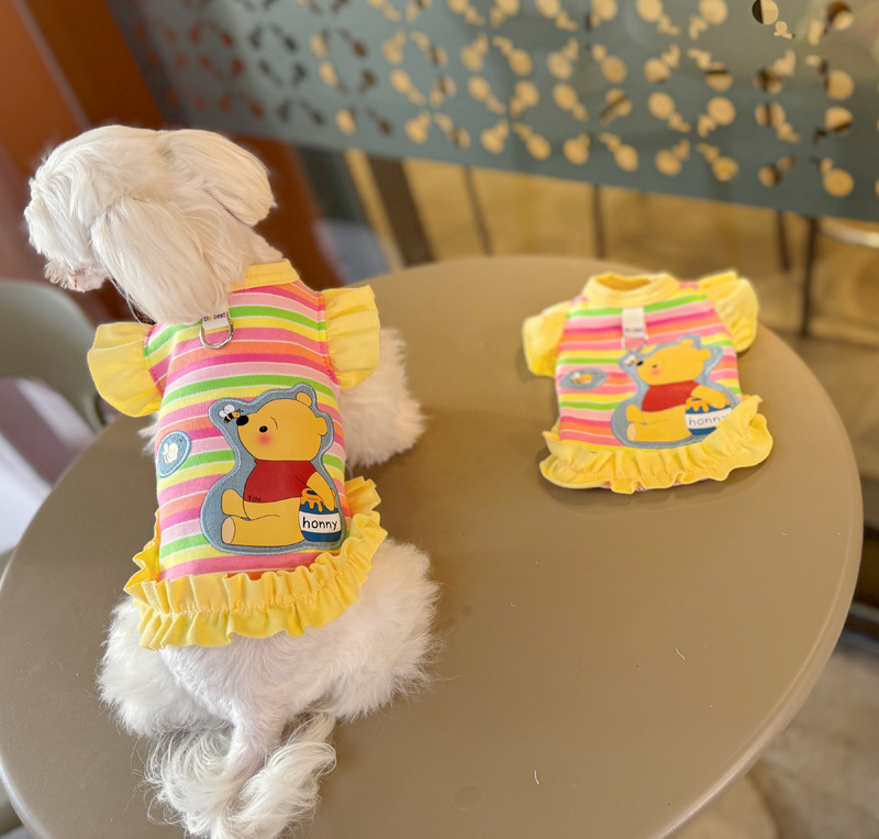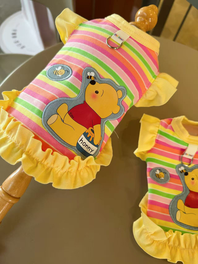 25秋冬新款宠物狗狗猫咪奶狗衣服 条纹小熊飞袖款可牵引