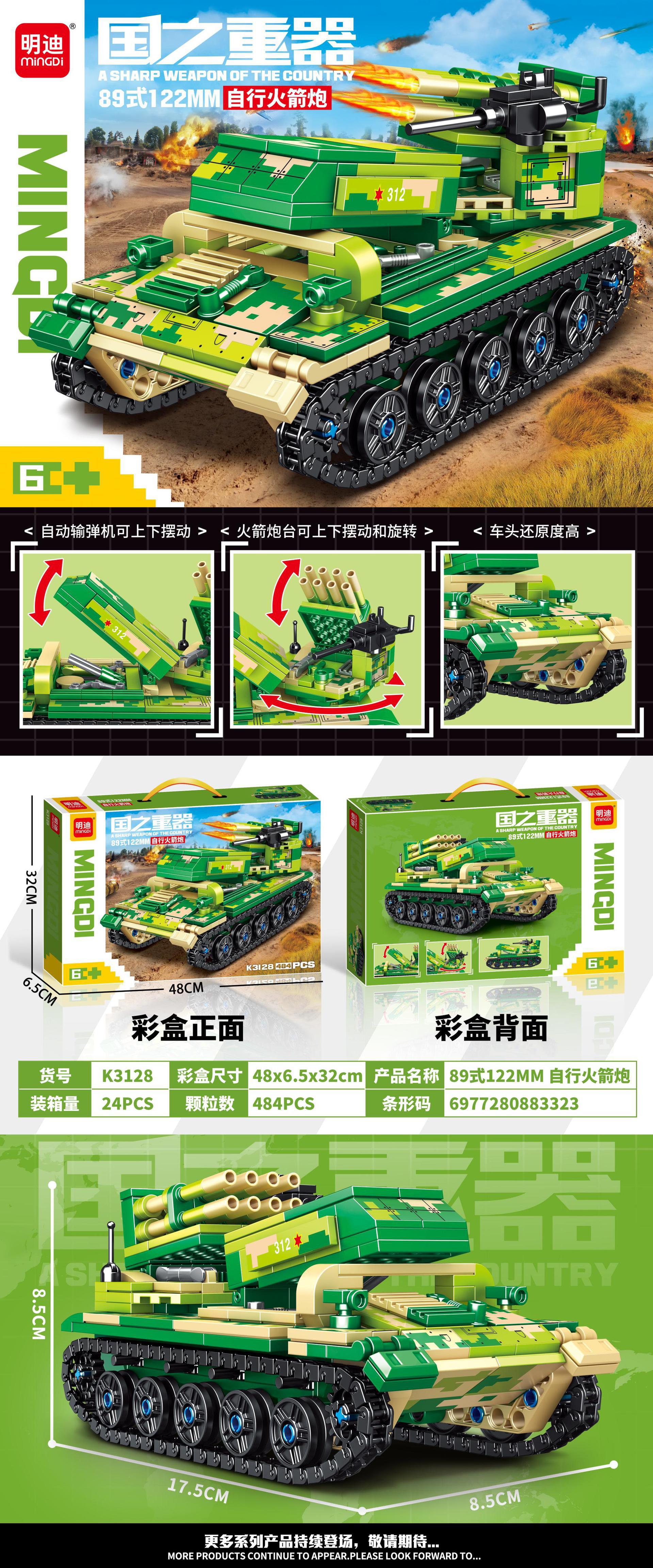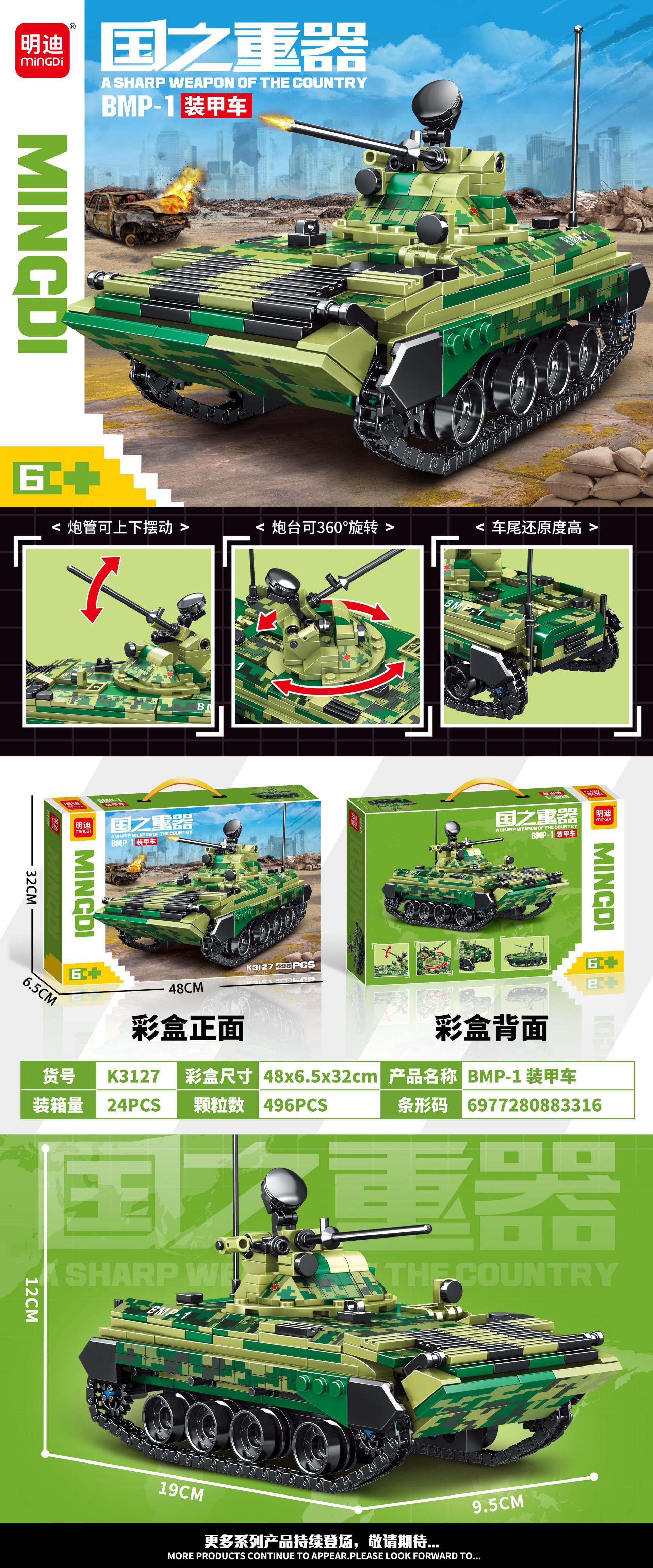 明迪K3155积木军事拼装阿帕玩具奇坦克装甲车战斗机男孩机构礼品