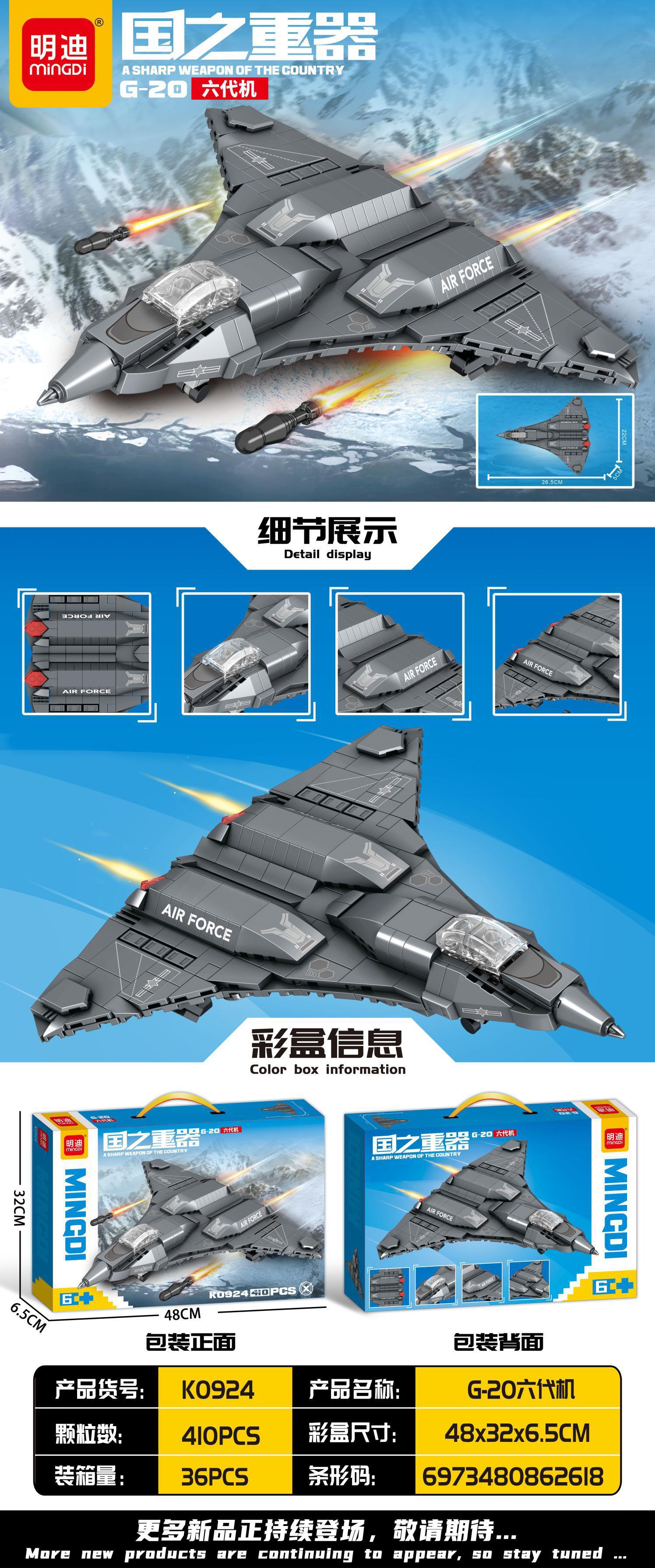 跨境鱼鹰直升机积木拼装玩具直20战斗机军事飞机模型儿童益智男孩