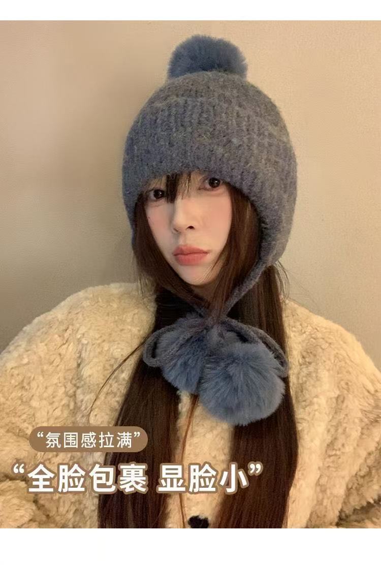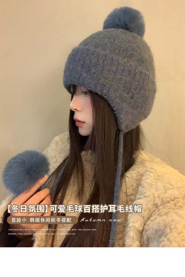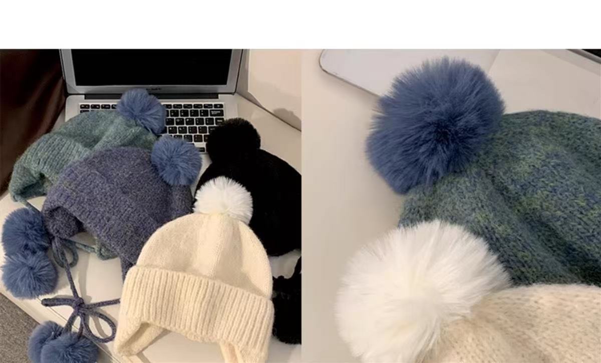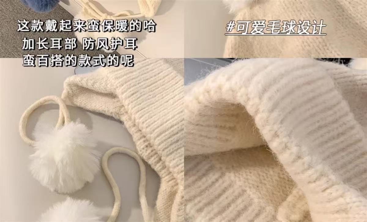 韩系针织帽女2025新款潮毛球可爱减龄显脸小秋冬防寒护耳毛线帽子