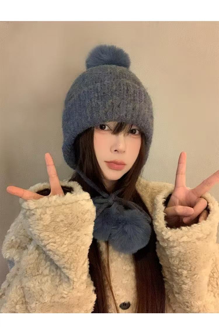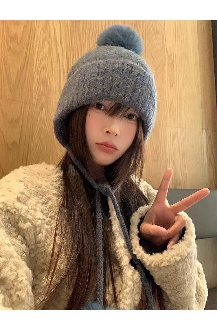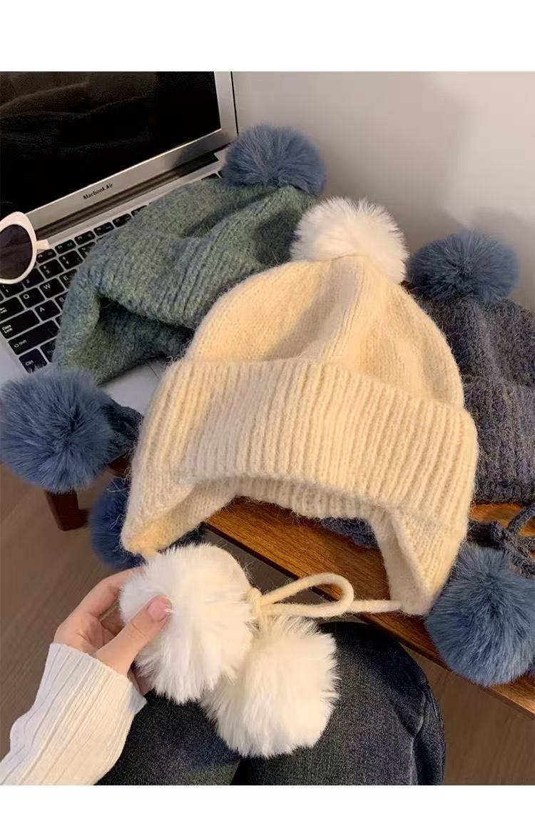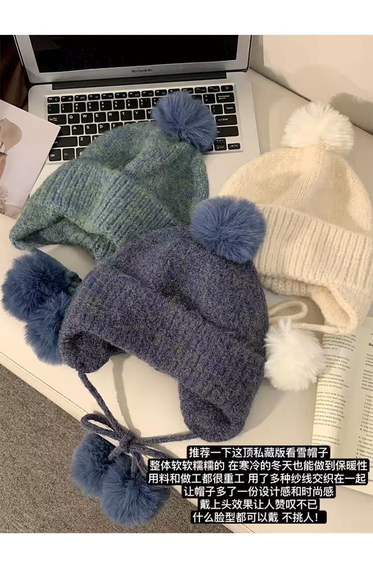 韩系针织帽女2025新款潮毛球可爱减龄显脸小秋冬防寒护耳毛线帽子