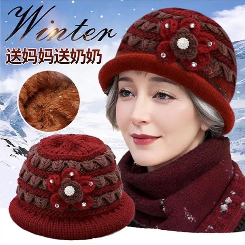 冬のお年寄りの帽子の子供のおばあさんの冬の毛糸の帽子とベルベットの厚い冬のお母さんのニット帽のおばあさんの保