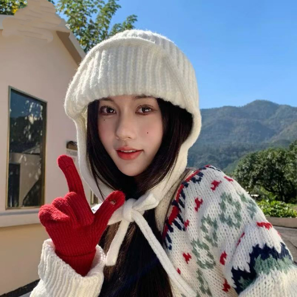 冬日氛围感ins韩系针织毛线帽女秋冬季保暖护耳飞行帽滑雪雷锋帽