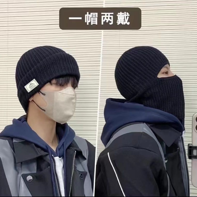 帽子冬メンズバラクラフニット耳当て防风毛糸マスク保温コールドキャップ防寒ヘッドカバー