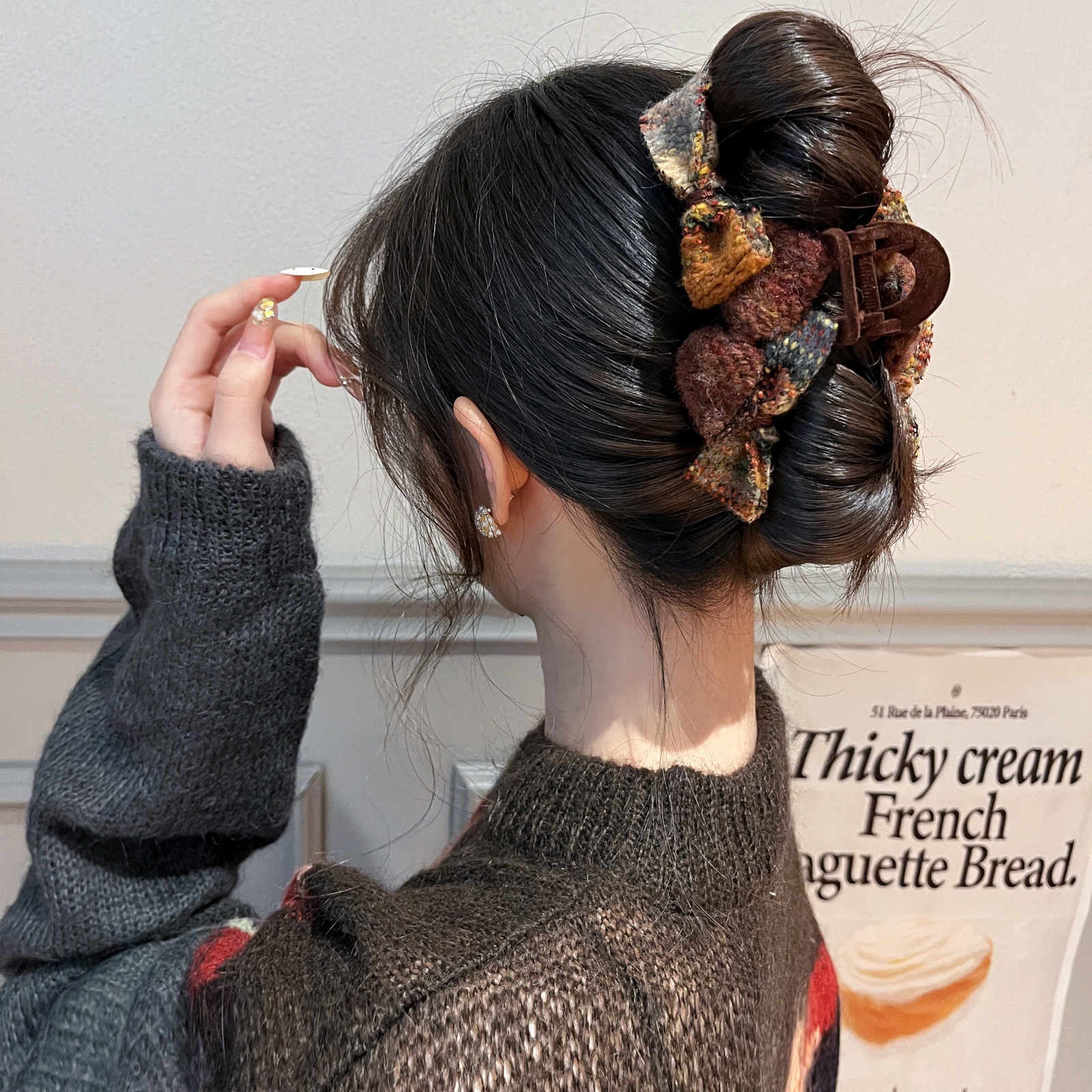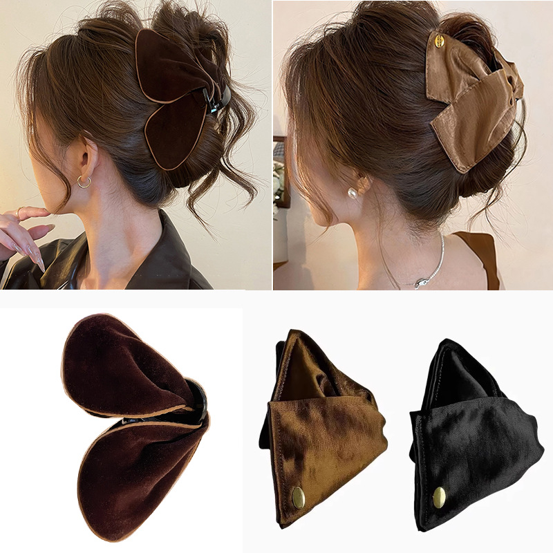 雪松焦糖~头发抓夹女毛呢蝴蝶结鲨鱼夹2025新款盘发夹巨好看发饰
