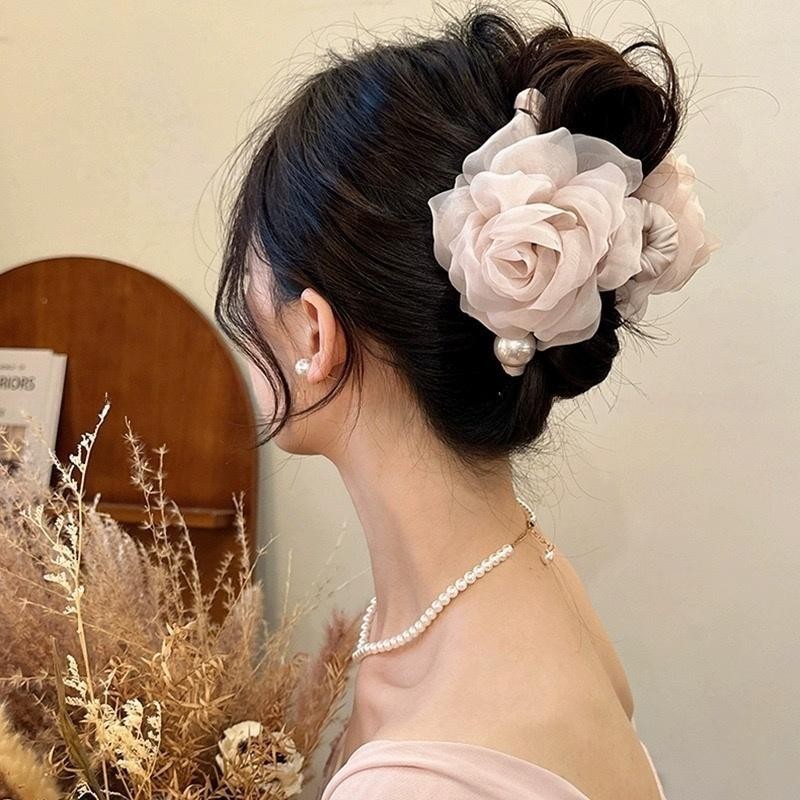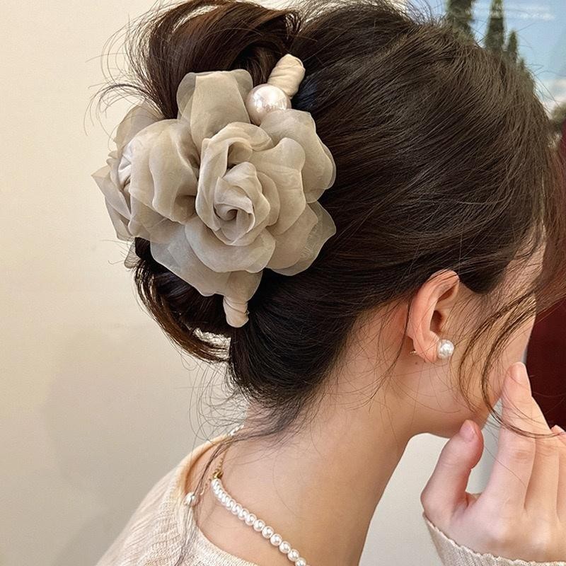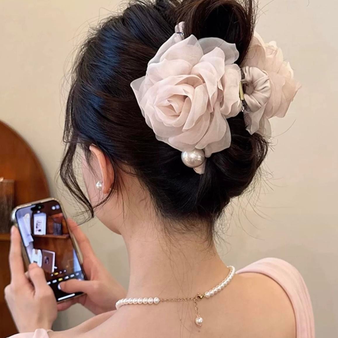 千金风温柔花朵珍珠抓夹女高级感后脑勺鲨鱼夹子盘发发卡发夹头饰