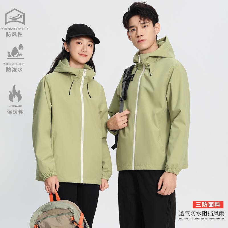 春秋冲锋衣定制印logo简约运动情侣款防风防水登山服户外连帽外套