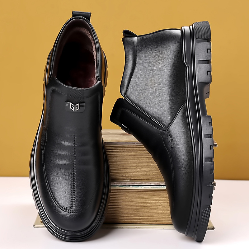 马丁靴男2025休闲百搭皮鞋正装一脚蹬鞋子男圆头加绒保暖棉鞋耐穿