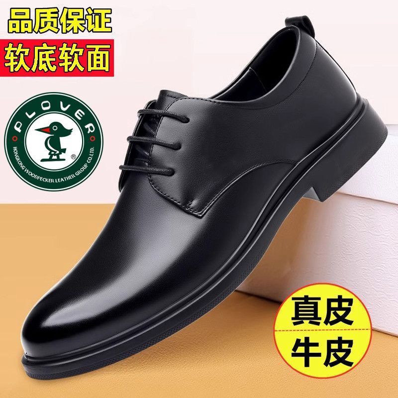 PLOVER春秋季新款真皮商务休闲皮鞋男青年韩版英伦正装透气男鞋子