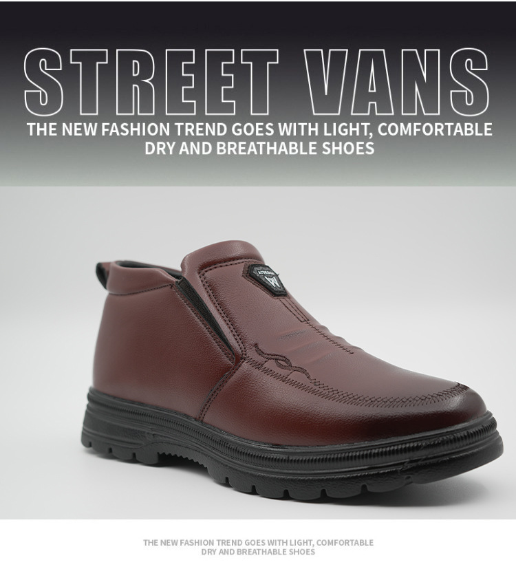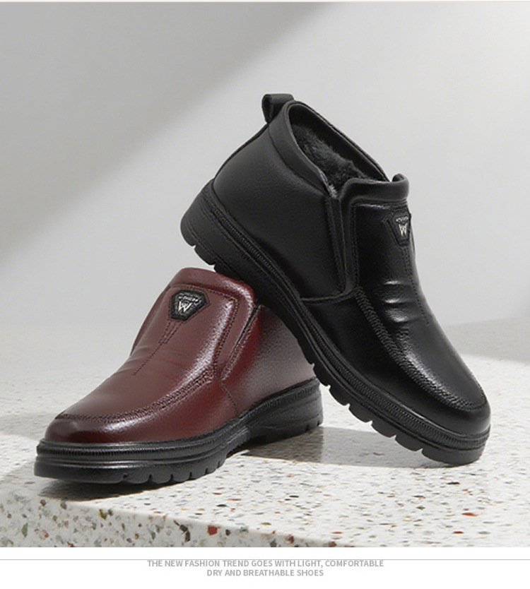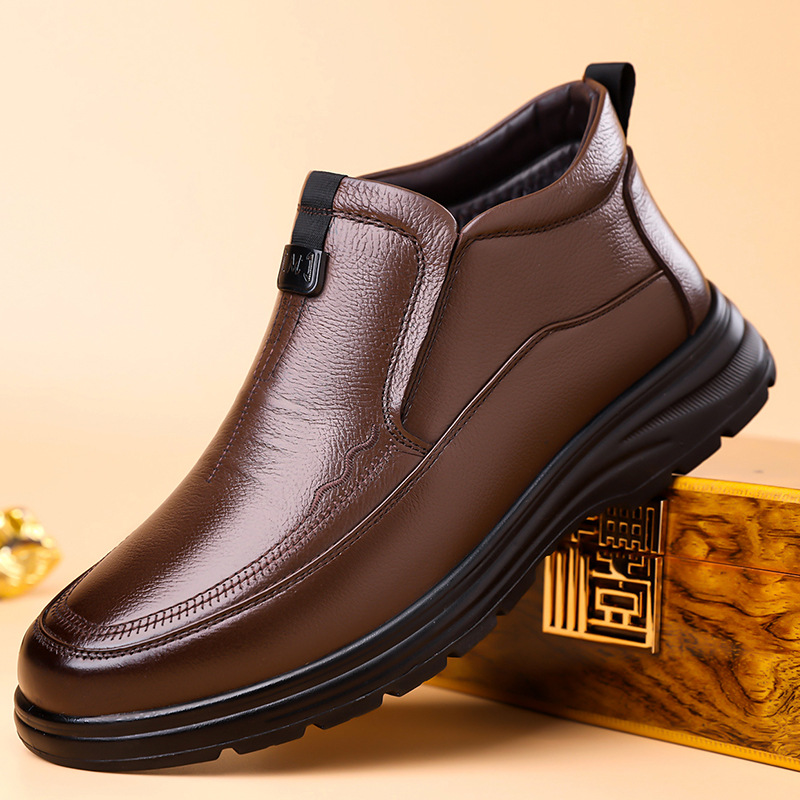 跨境真皮套脚棉鞋冬季款男士加绒保暖休闲高帮防滑中老爸爸雪地靴