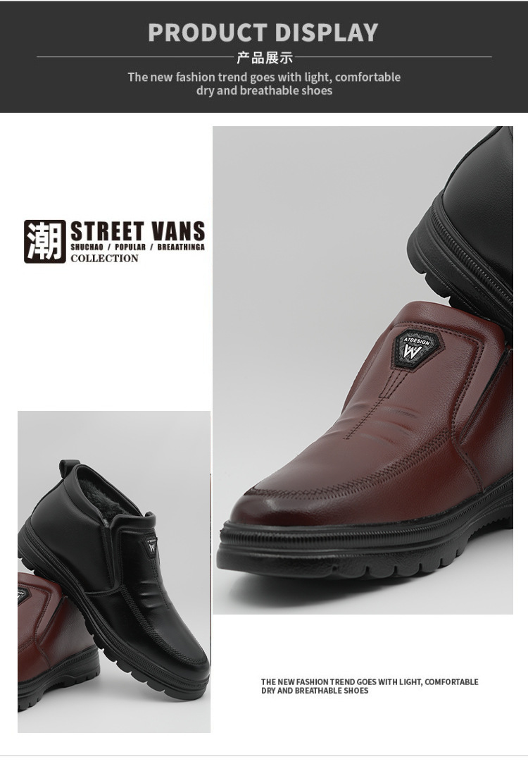 【冷粘棉皮鞋】一脚蹬棉鞋男士冬季雪地靴加厚绒毛抗寒防滑皮鞋男