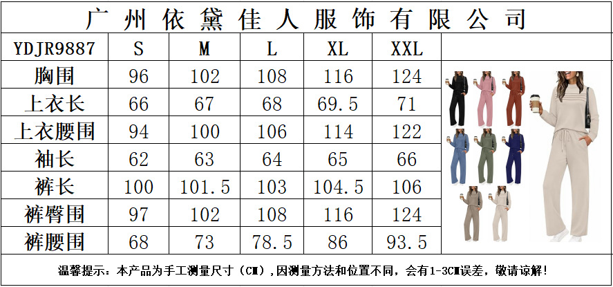 亚马逊欧美外贸女士秋冬新款休闲设计款长袖长裤套装
