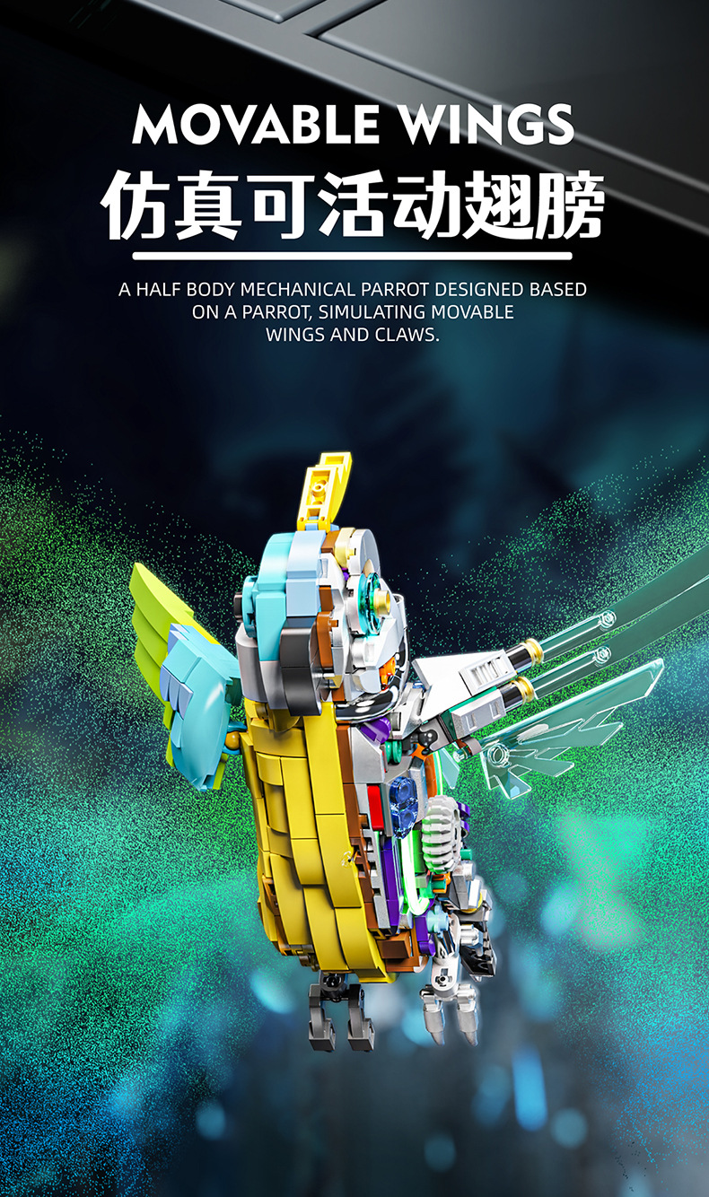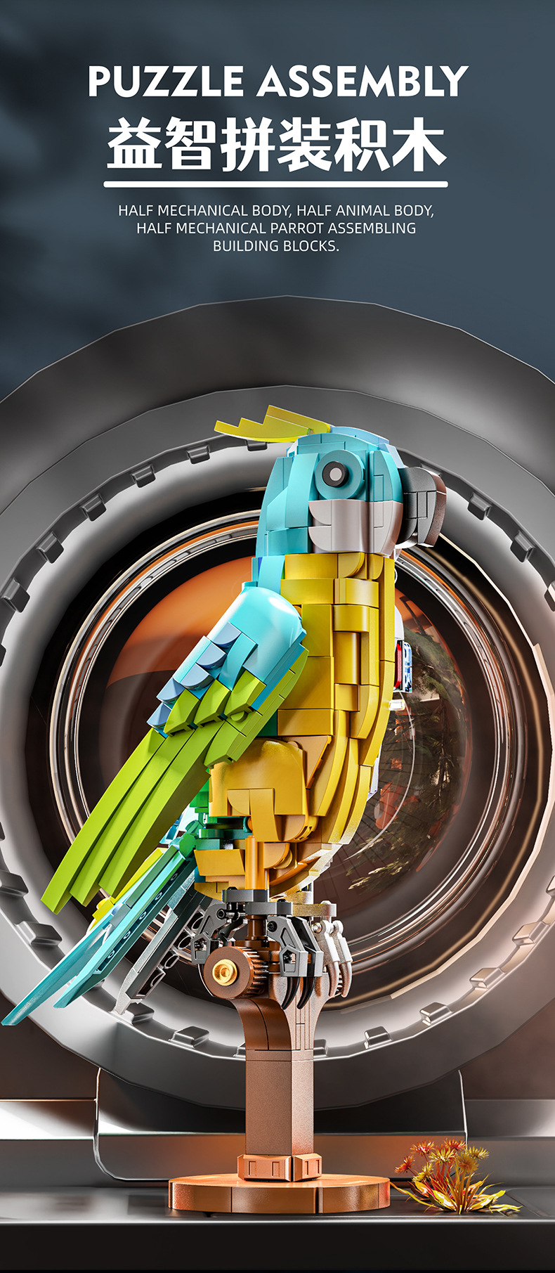 机械鹦鹉中国积木儿童孩益智恶童拼装模型手工摆件送男女孩子礼物