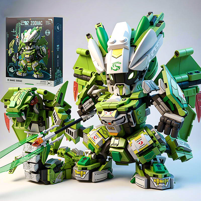 已蛇机甲变形机器人中国积木拼装益智男女孩子儿童玩具模型礼物