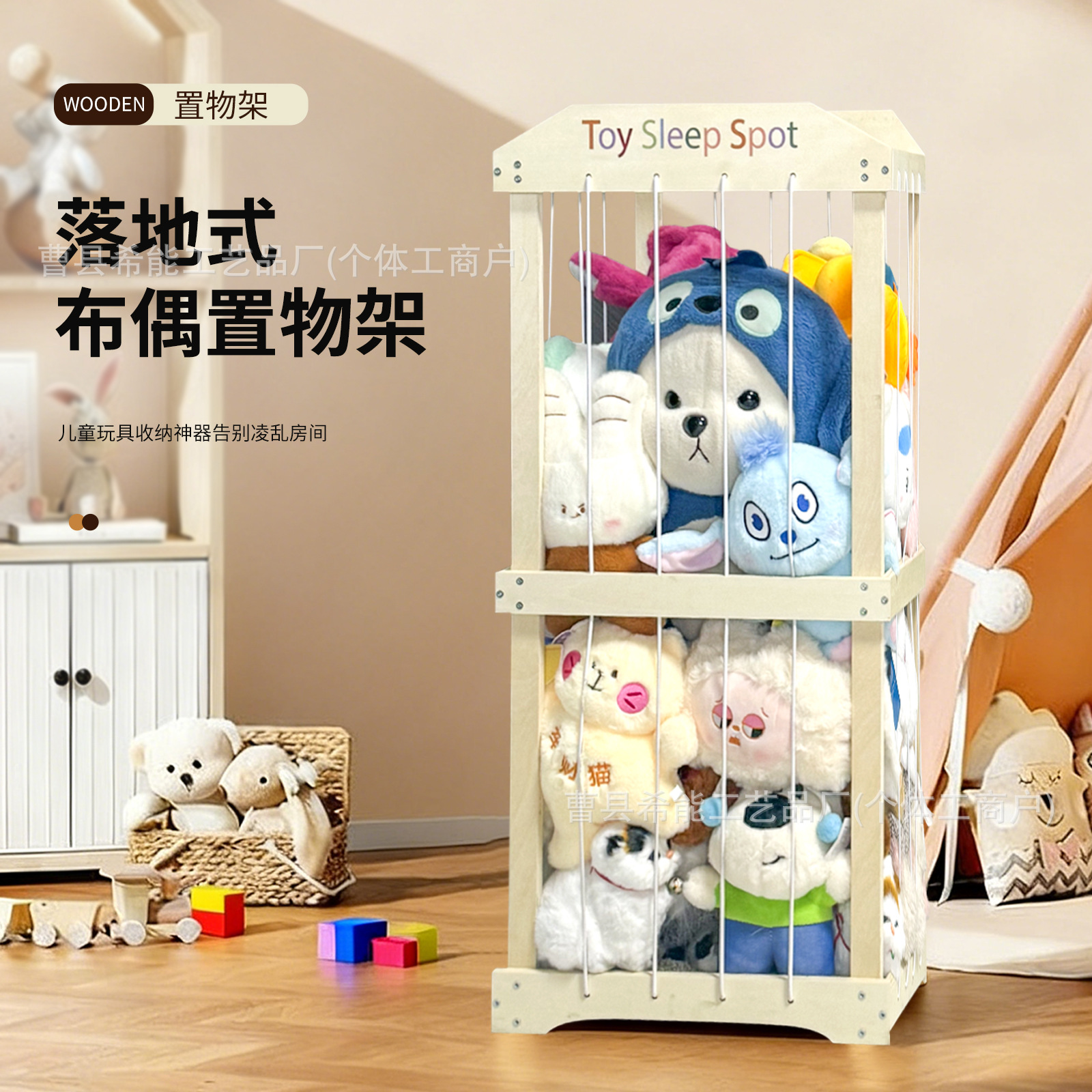 木制玩偶收纳架毛绒玩具储存收纳架落地式娃娃展示架毛绒玩具整理