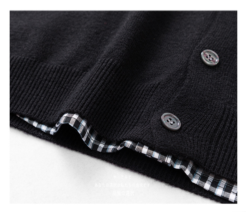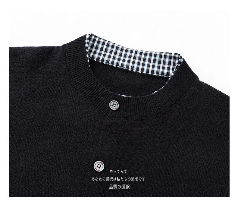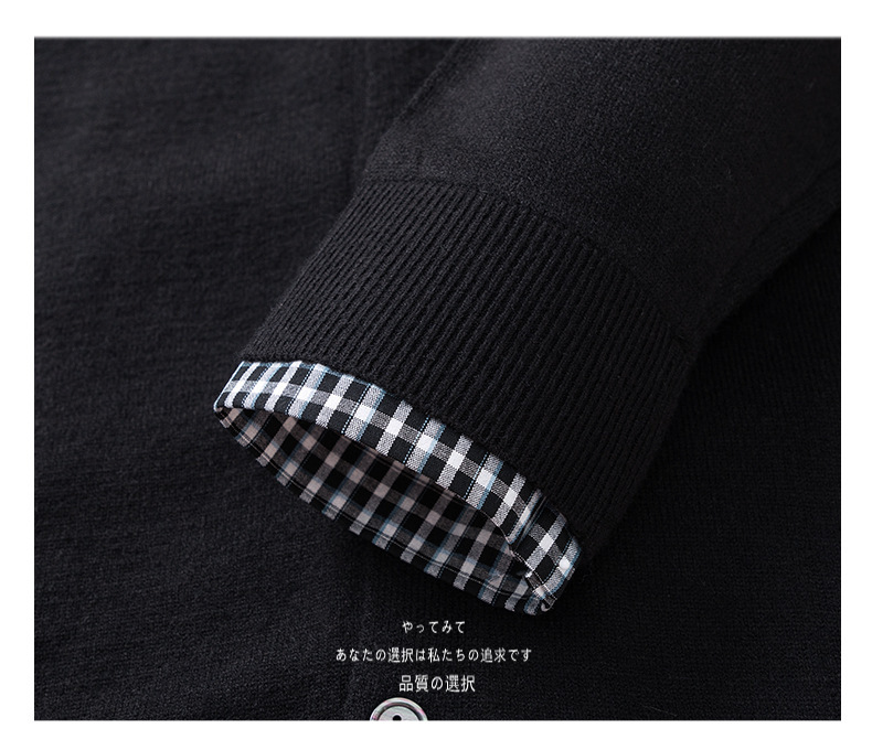 跨境春季新品薄款假二件纽扣开衫毛衣男士外套休闲青年拼色秋衣男