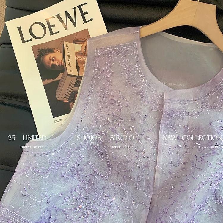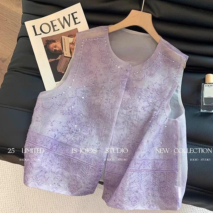 气质紫色中式夏款马甲夏天刺绣马轻薄马甲新高级款夹通勤薄女重工