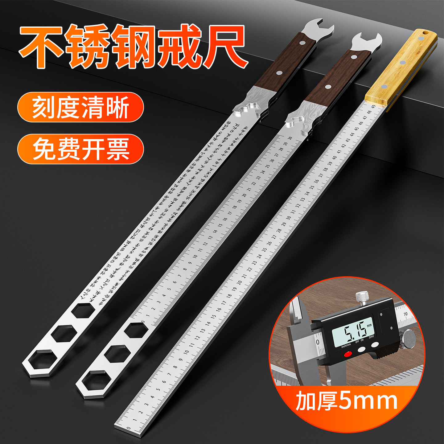 钢尺加厚硬刚板尺15/30/50cm长尺子不锈钢直尺刻度1米5高精度2米