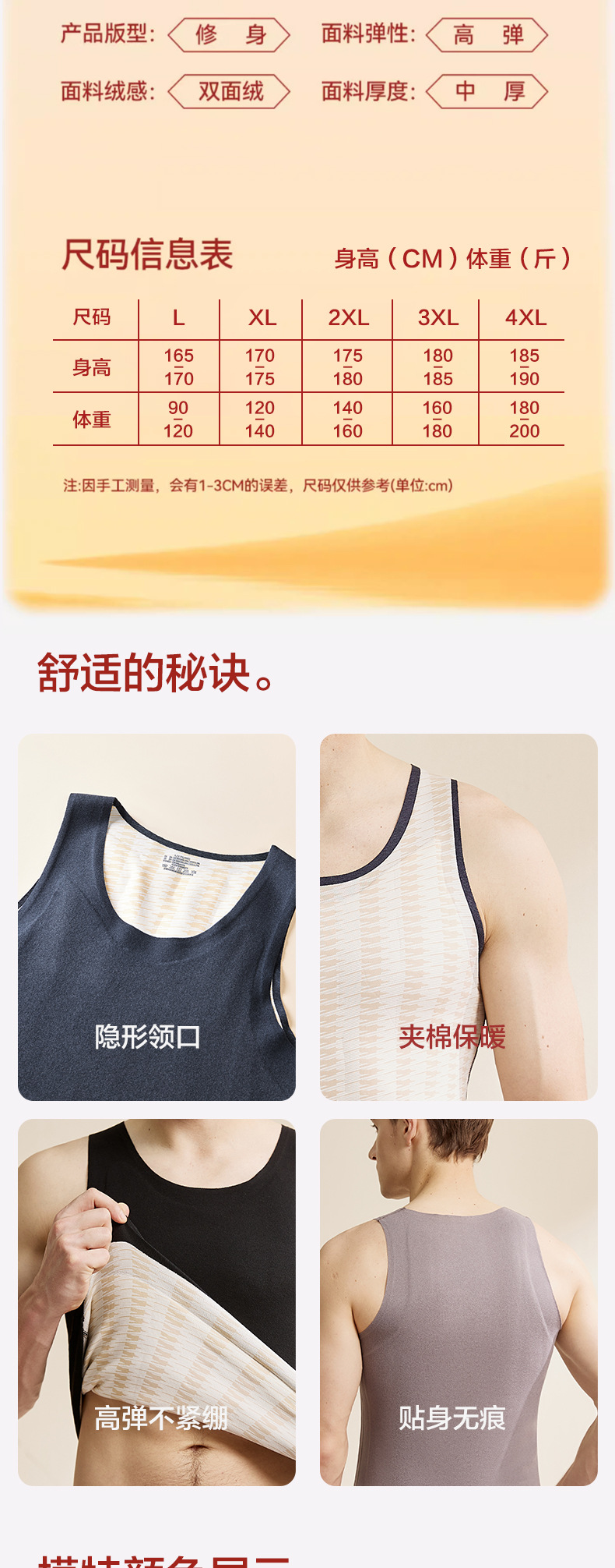 雅鹿保暖背心男士发热内衣加绒德加厚冬季冬天男款内搭打底衫上衣