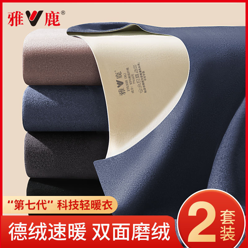 雅鹿徳パイルab面無痕保温男性ベルベットは冬の防寒恒温発熱秋衣秋ズボンセットを厚くした