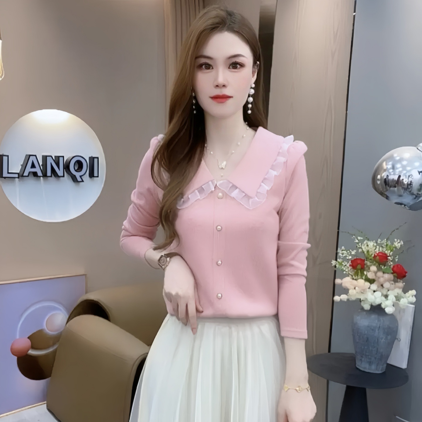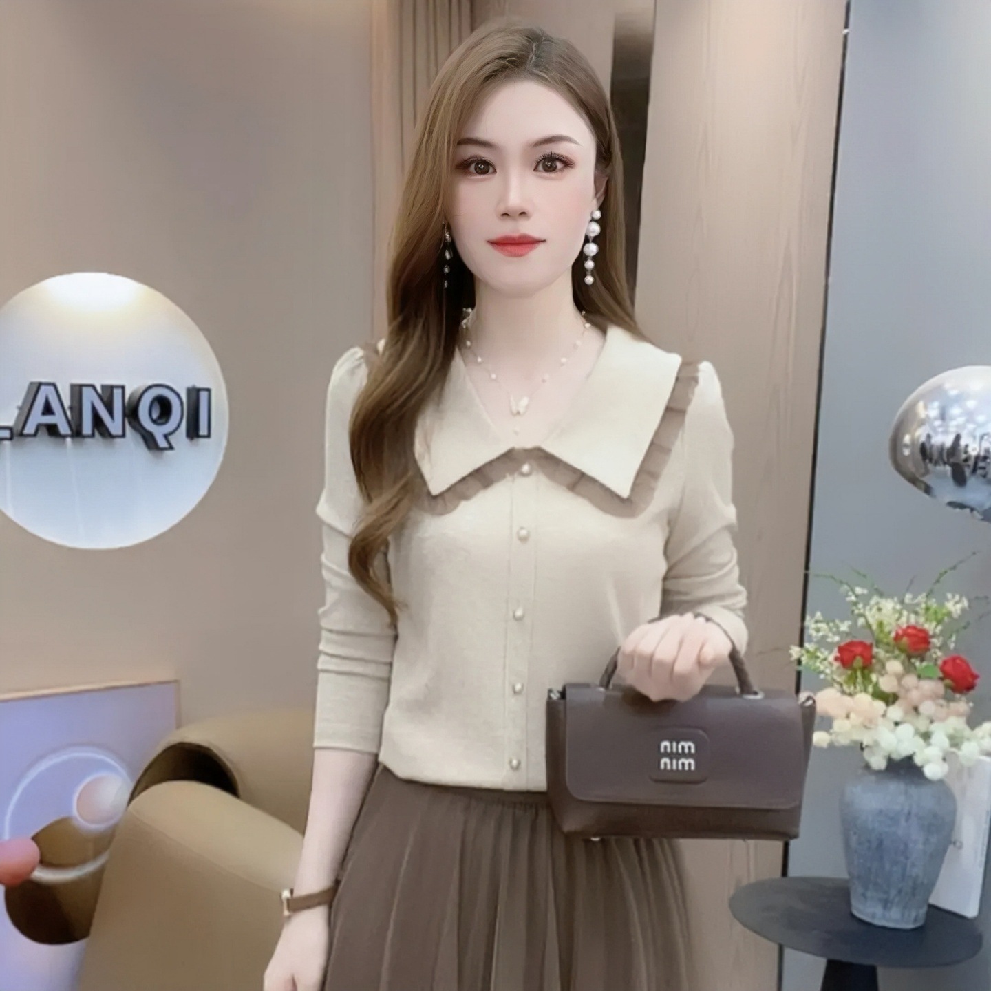 假两件条纹长袖针织衫女新款巨好看早秋外套宽松显瘦气质百搭上衣