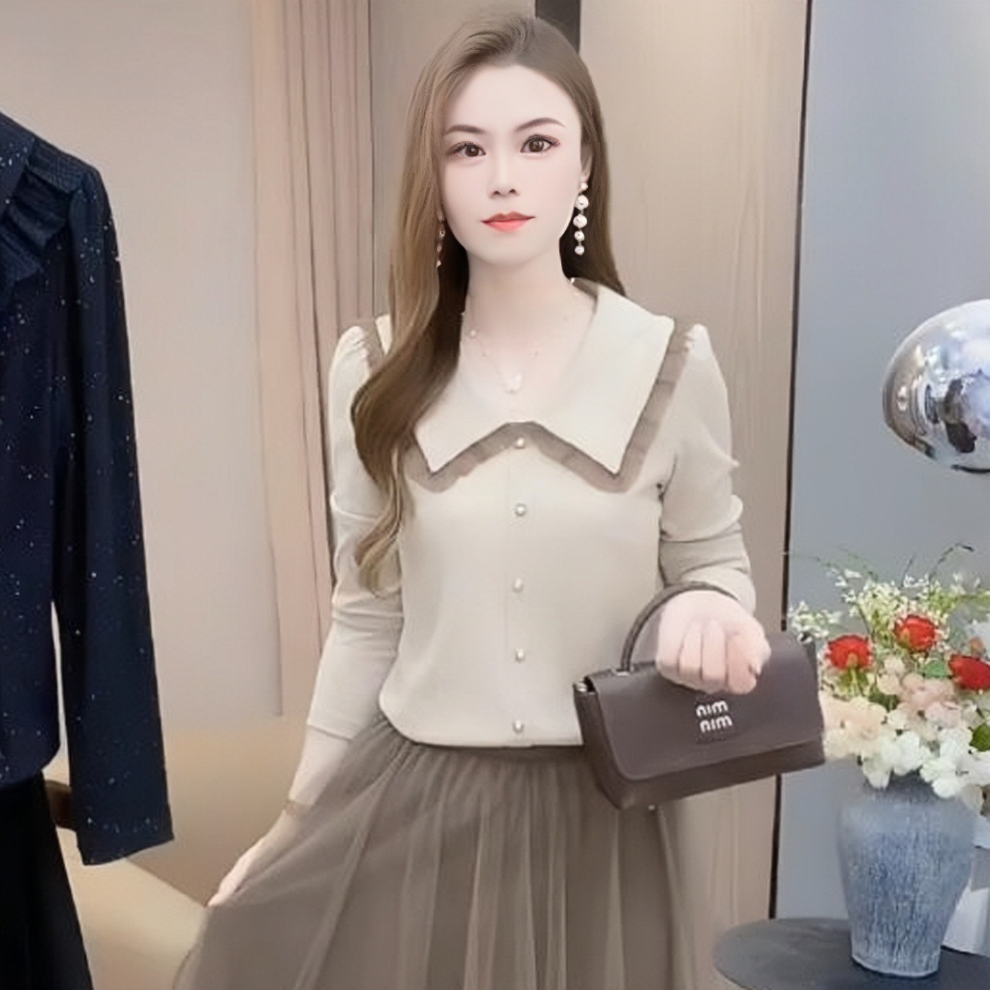 时尚气质T恤女式早秋新款宽松遮肚子长袖打底衫百搭显瘦洋气上衣