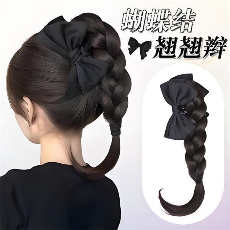 女性用ウィッグ、ハイポニーテール、模擬リボンクリップ、ツイスト、小さな三つ編み、ソース工場、クロスボーダーポニーテール、卸売在庫
