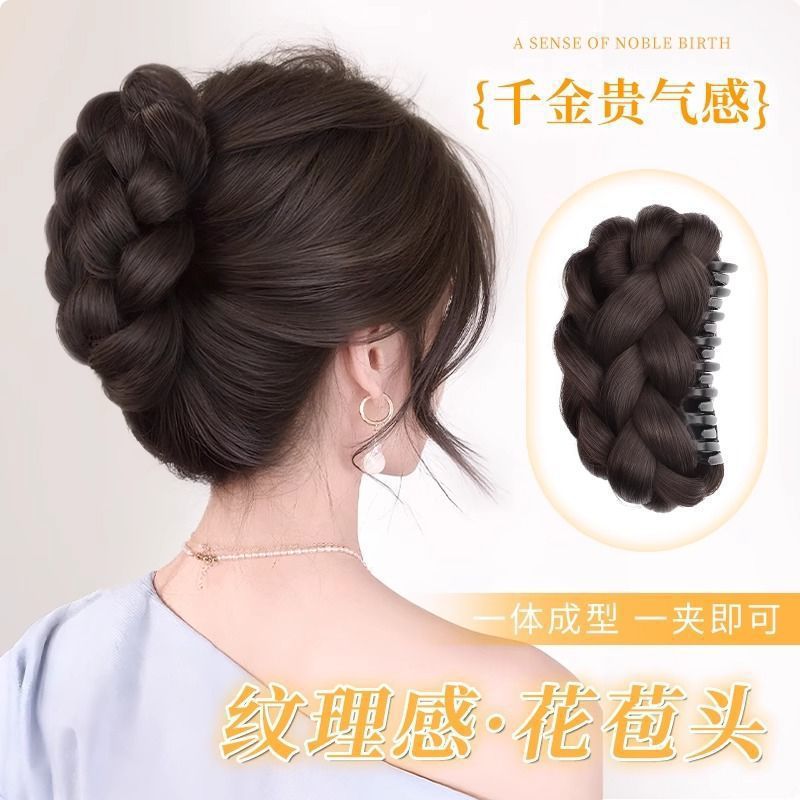 女性用ツイストボールヘッドウィッグ、人工毛クリップ、高貴なつぼみヘッド、ふわふわヘアアーティファクト、後頭部ウィッグ