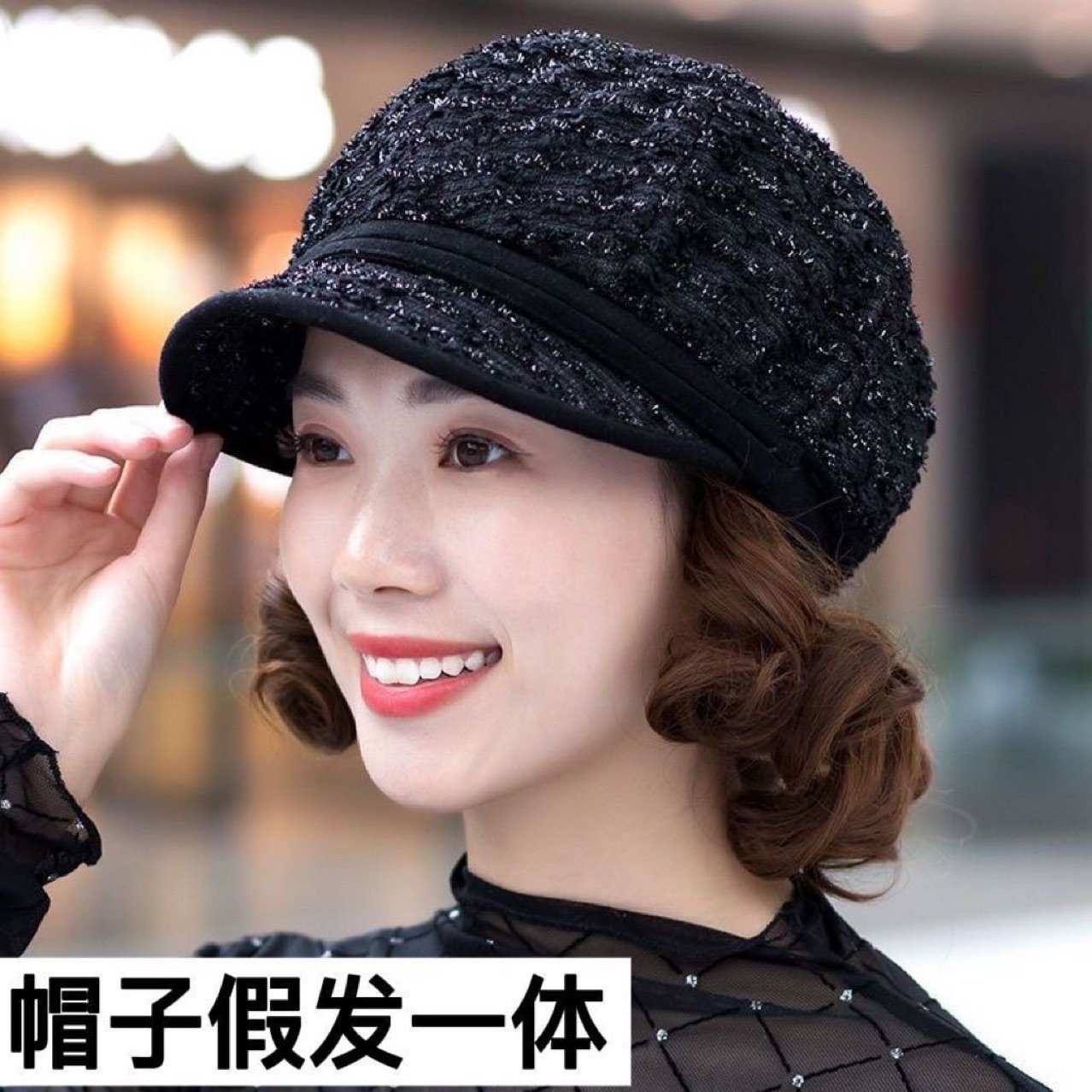 帽子假发一体女气质时尚短款卷发帽秋冬中老年妈妈仿真短卷假发帽