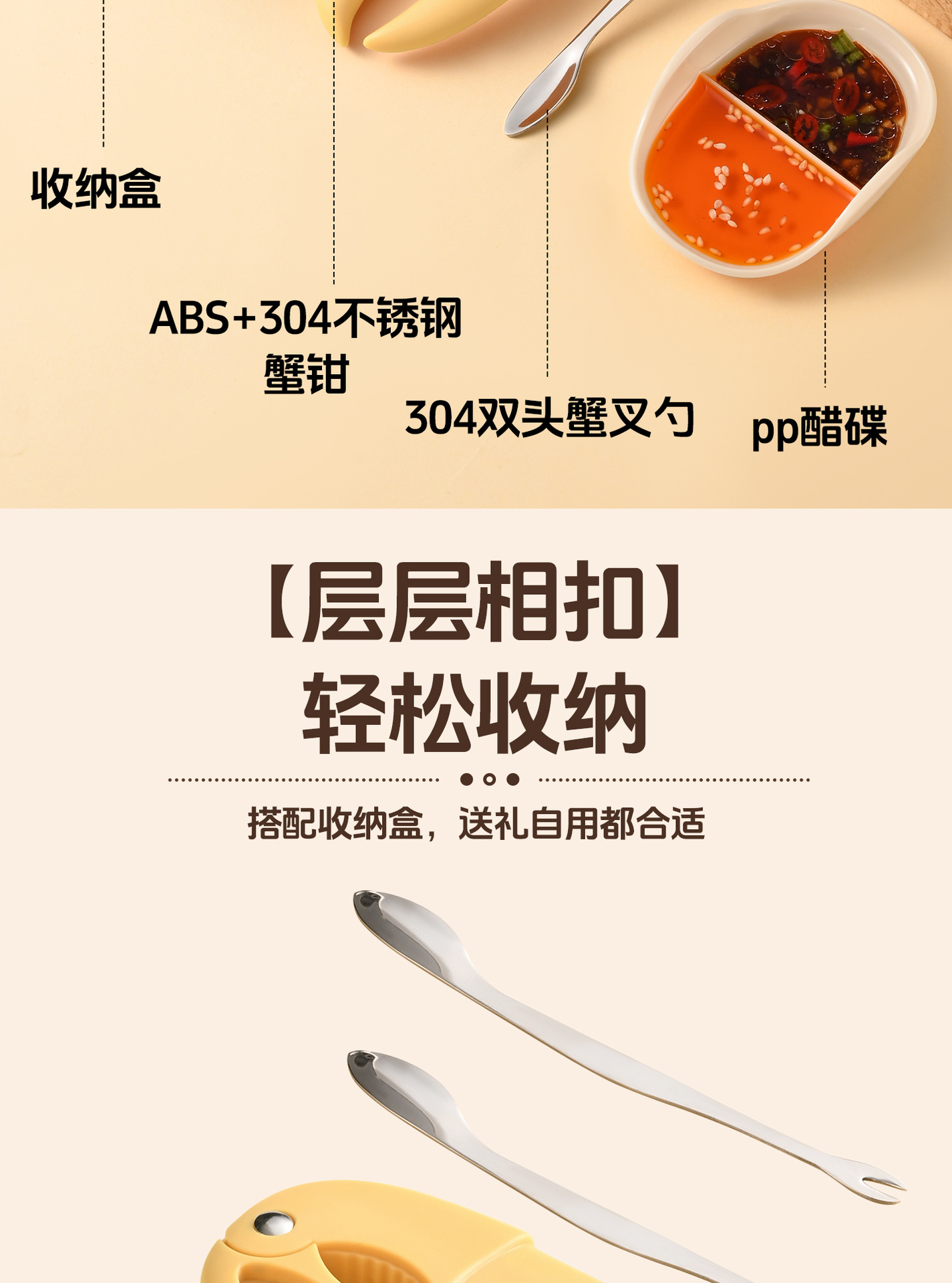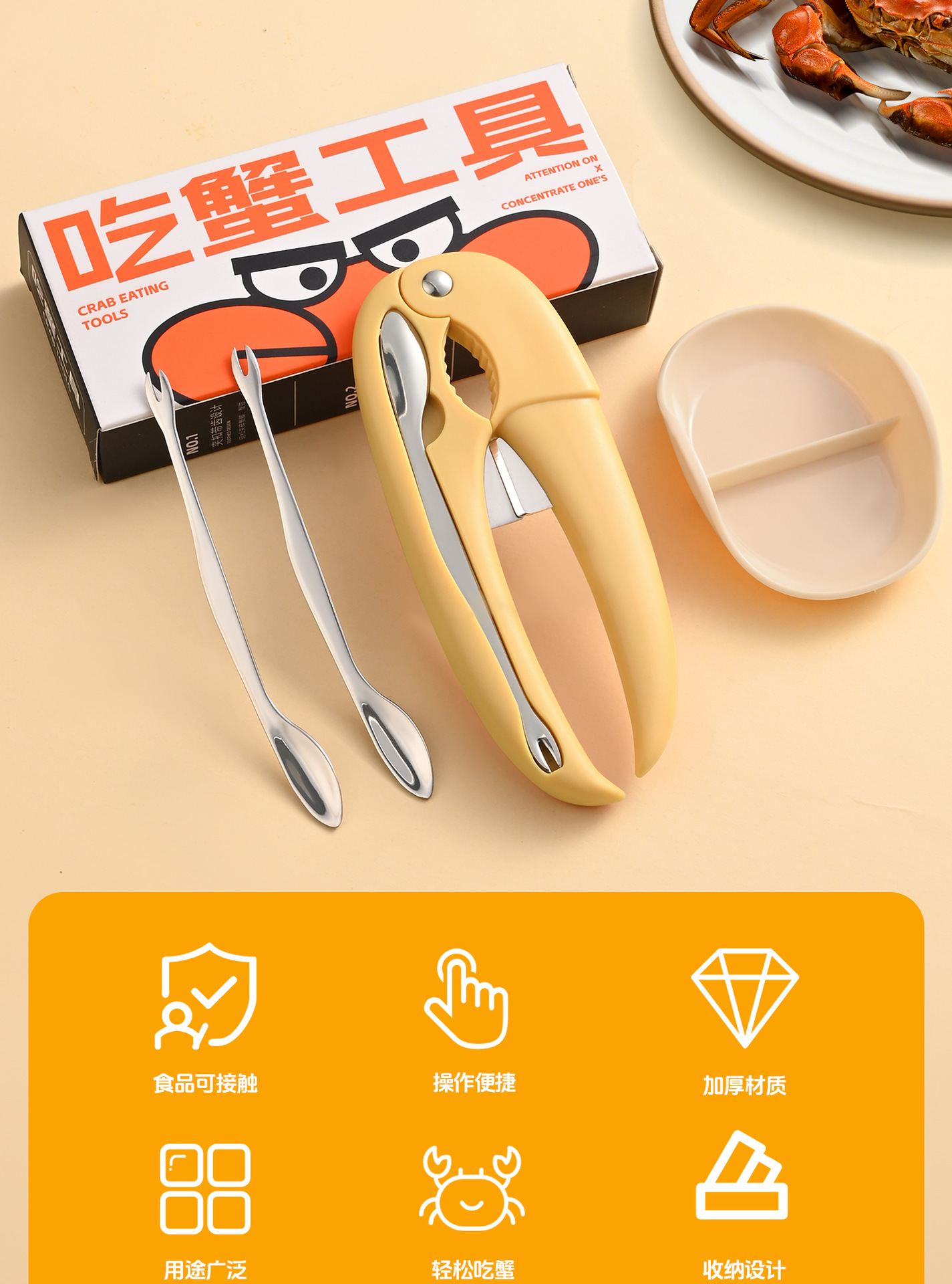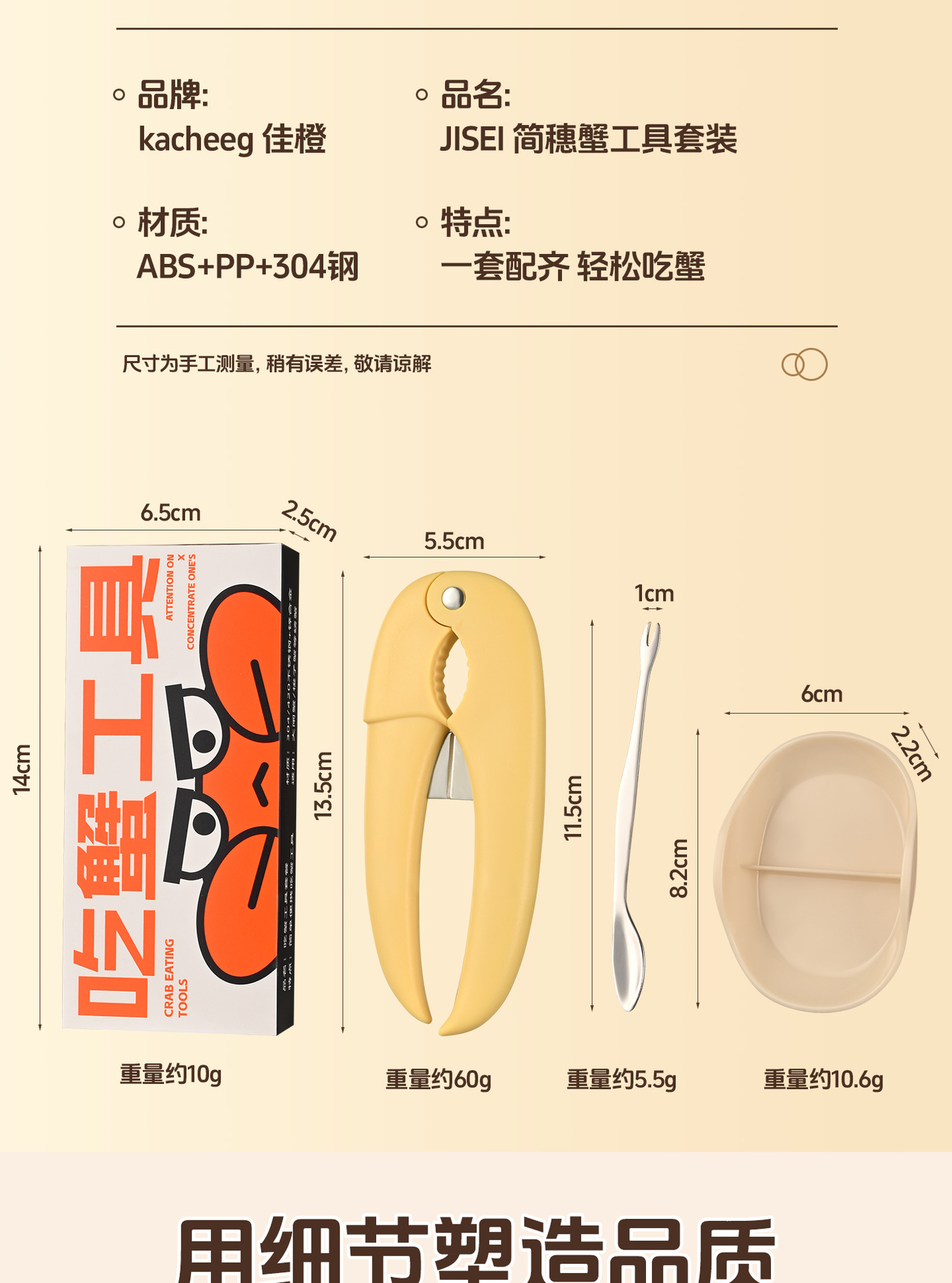 颜色 JISEI 简穗蟹工具套装【钳+叉*2+醋碟】黄色,JISEI 简穗蟹工具套装【钳+叉*2+醋碟】米咖色