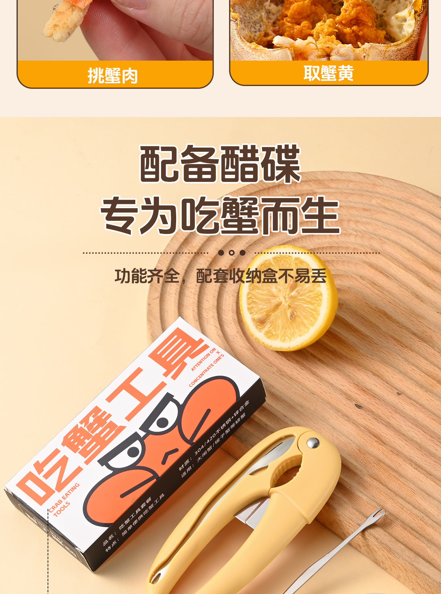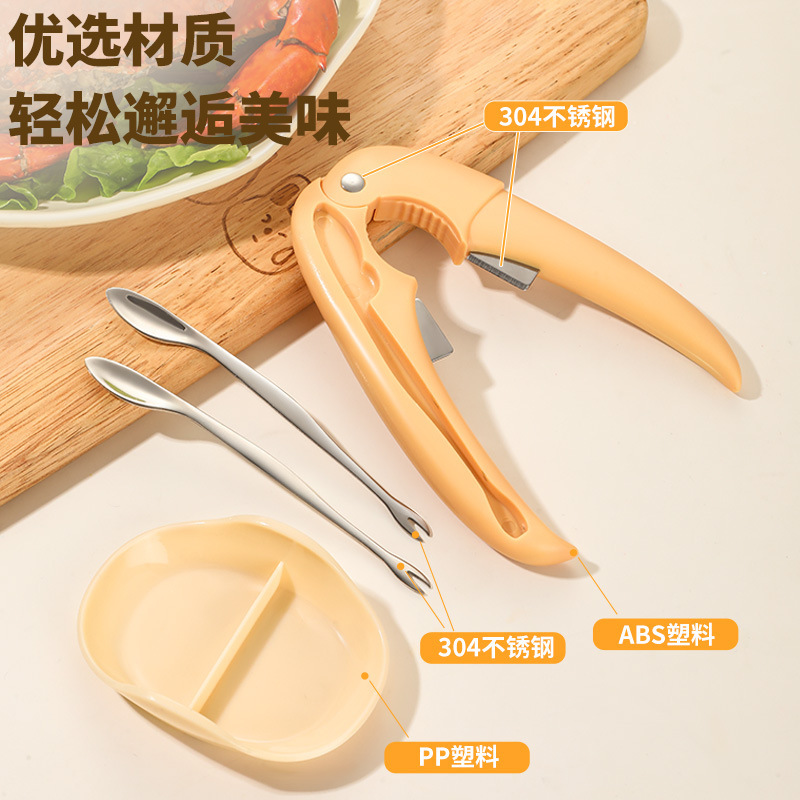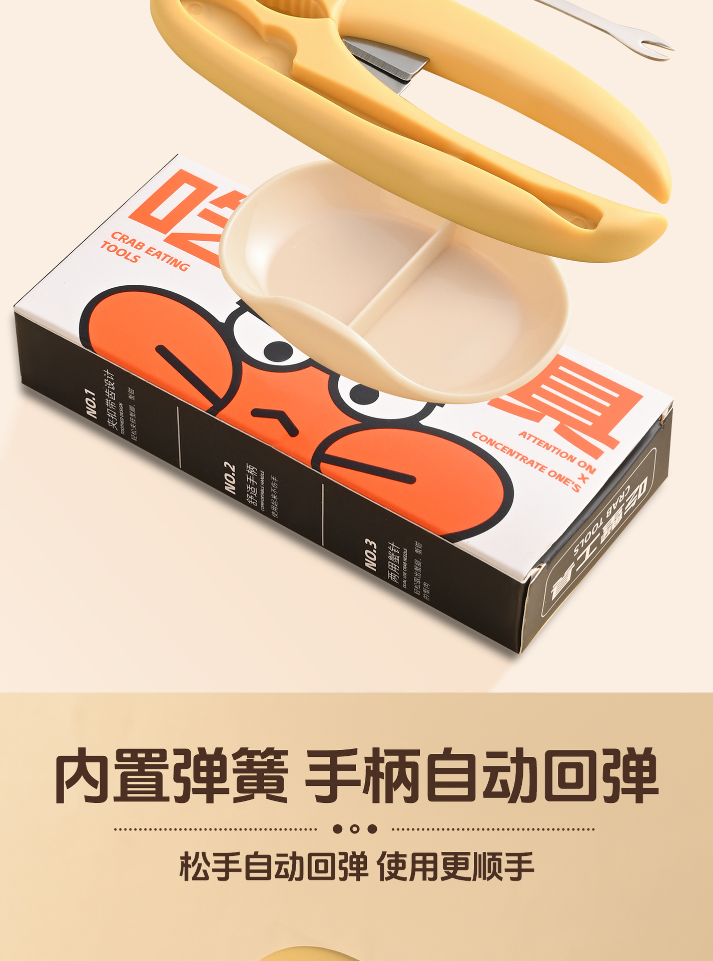 颜色 JISEI 简穗蟹工具套装【钳+叉*2+醋碟】黄色,JISEI 简穗蟹工具套装【钳+叉*2+醋碟】米咖色