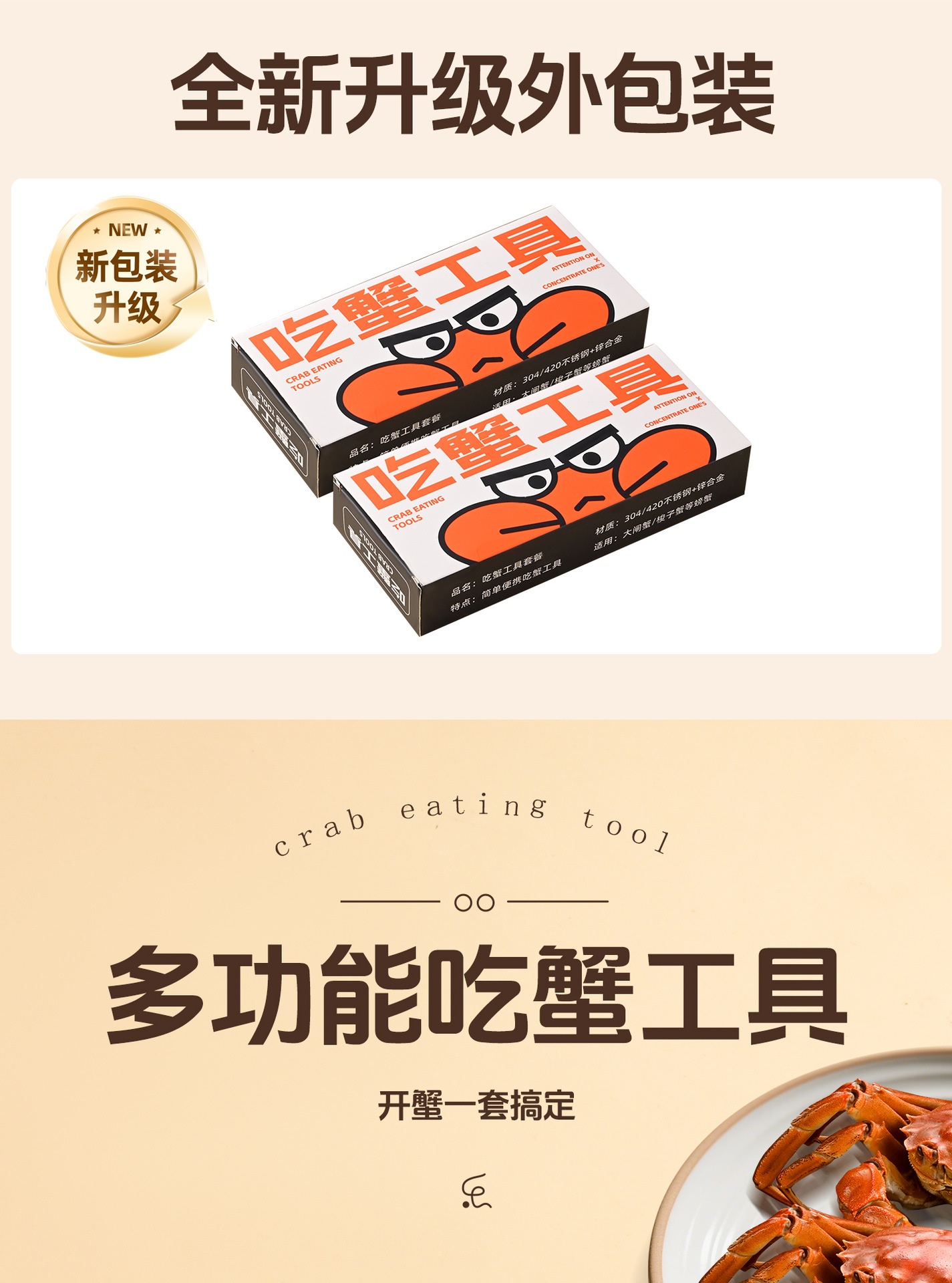 吃蟹工具蟹八件吃螃蟹专用大闸蟹三件套蟹剪刀钳夹针拆蟹剥蟹神器