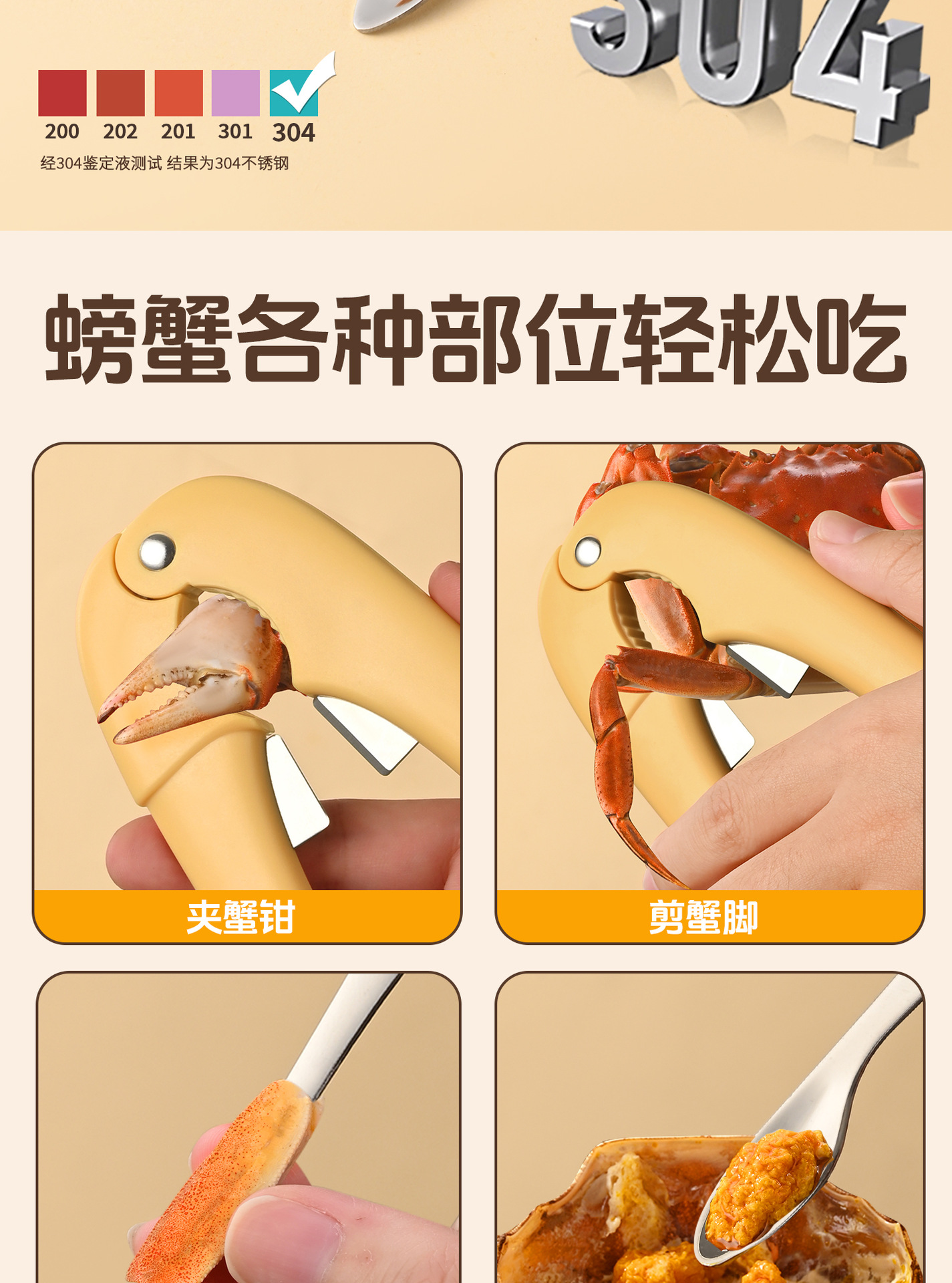 不锈钢蟹钳蟹针工具吃蟹套装钳神器螃蟹专用夹子家用蟹夹现货批发