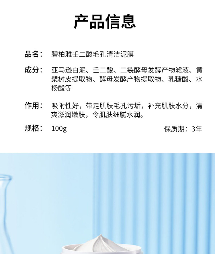 产品名称 碧柏雅壬二酸毛孔清洁泥膜