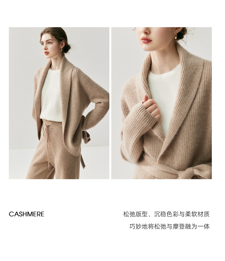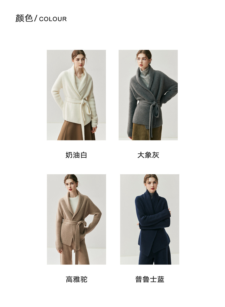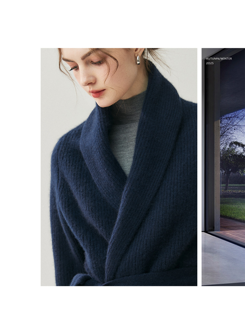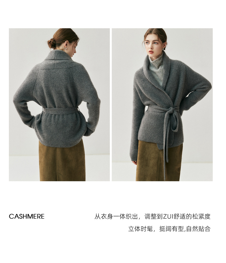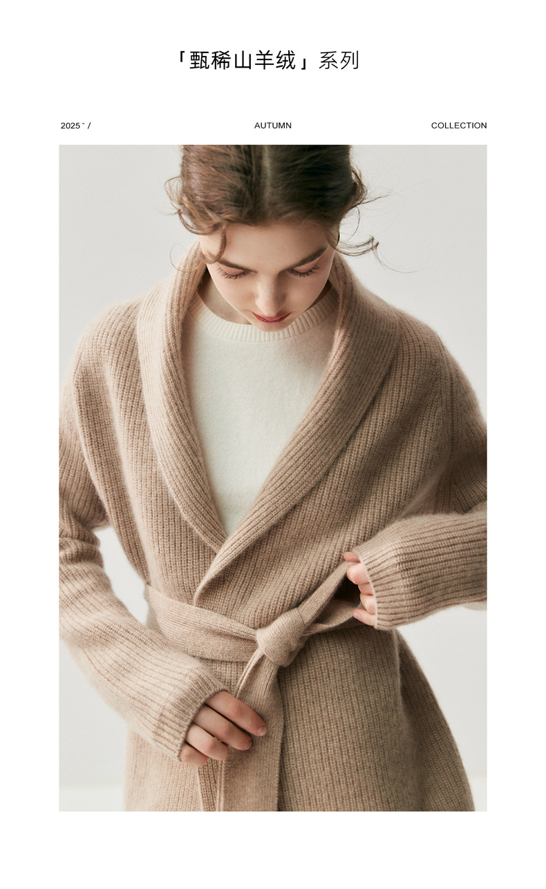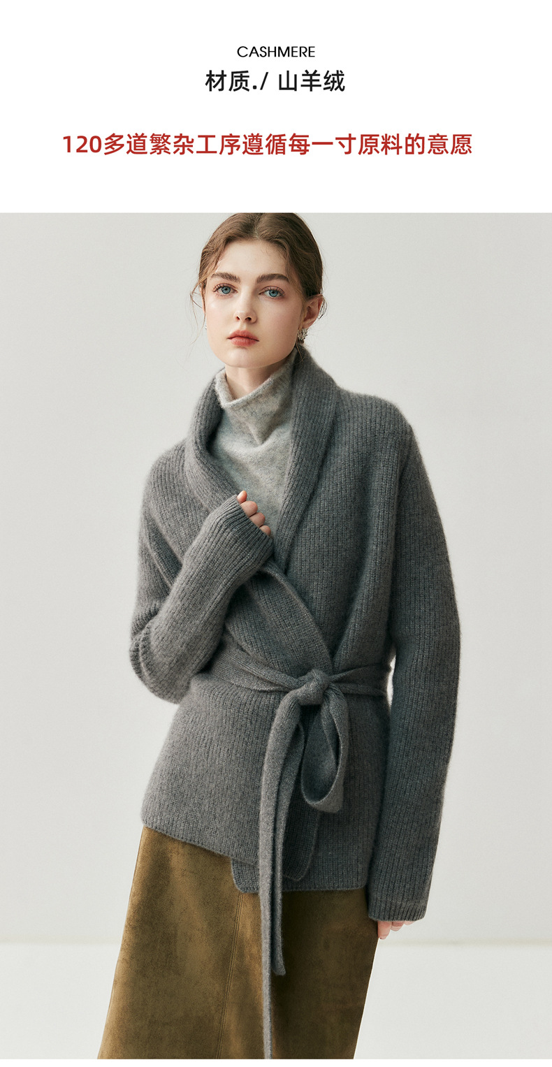 2025秋冬新款山羊绒开衫女浴袍式针织外套修身系带短款慵懒显瘦毛