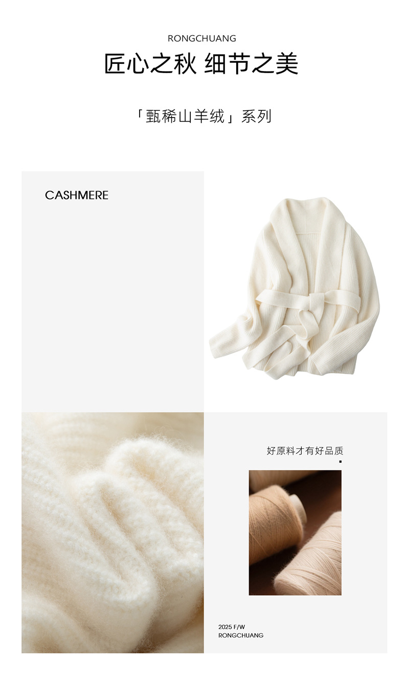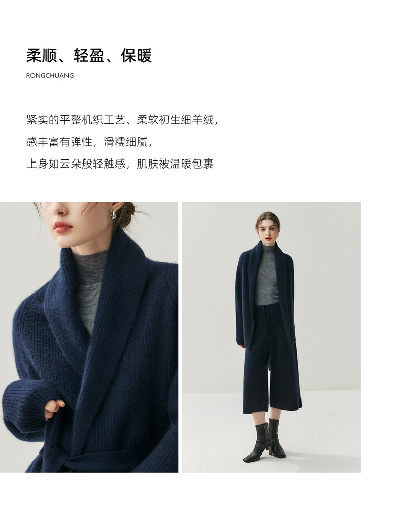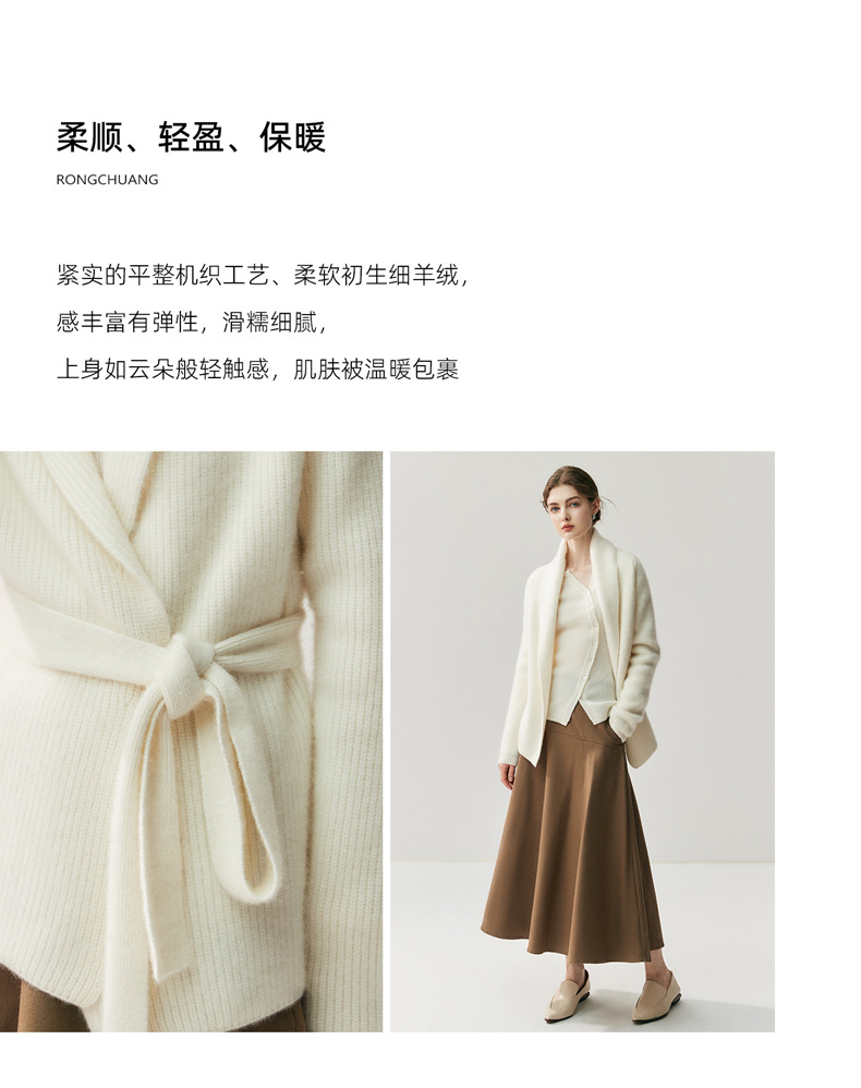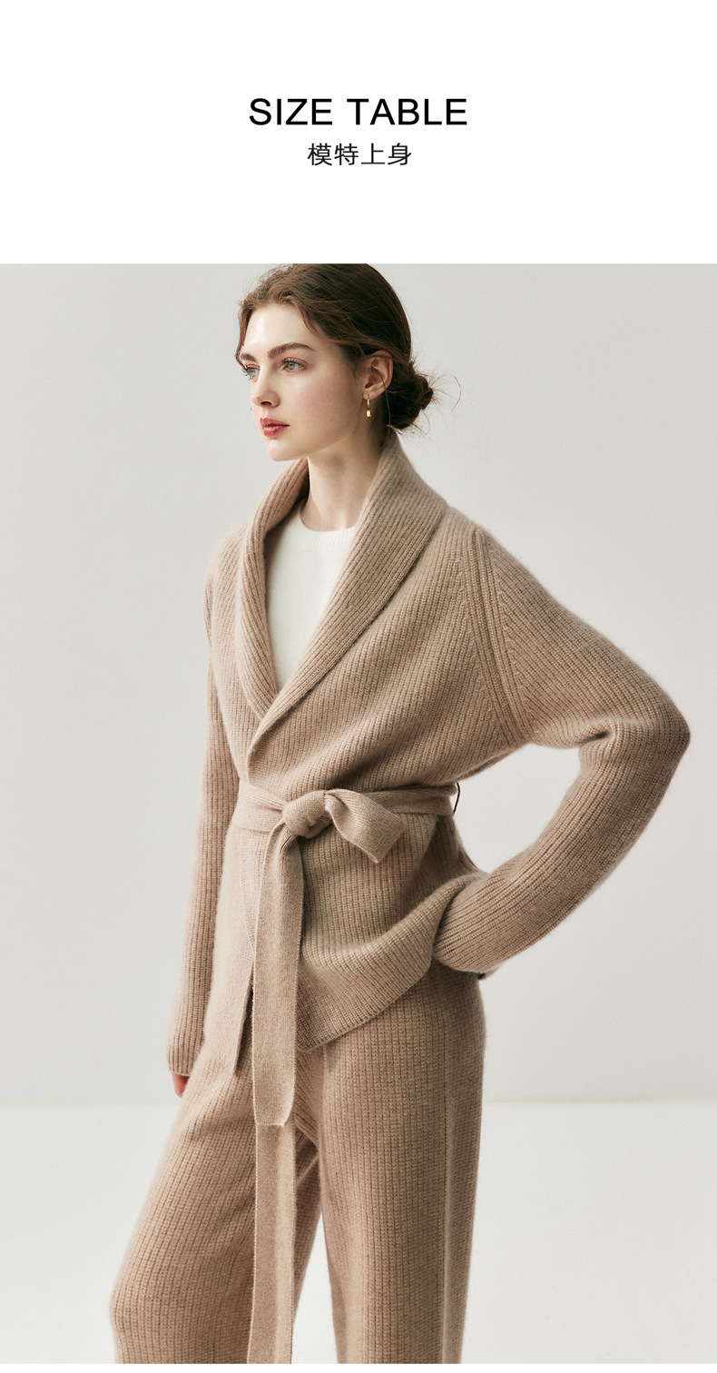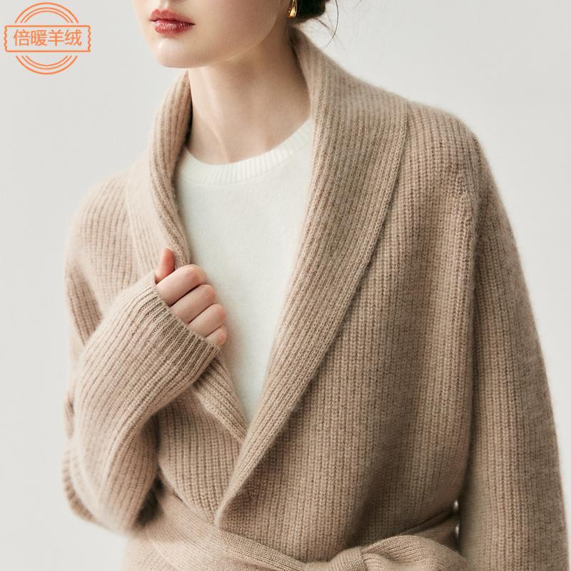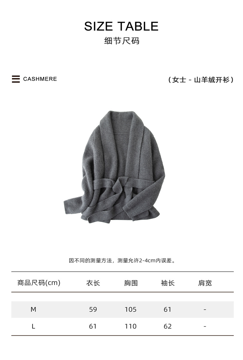 2025秋冬新款山羊绒开衫女浴袍式针织外套修身系带短款慵懒显瘦毛